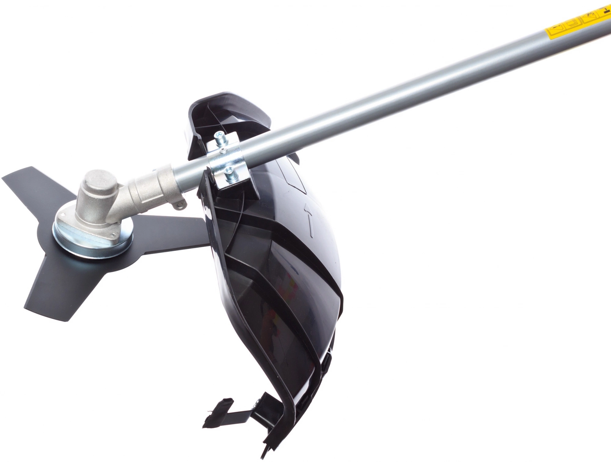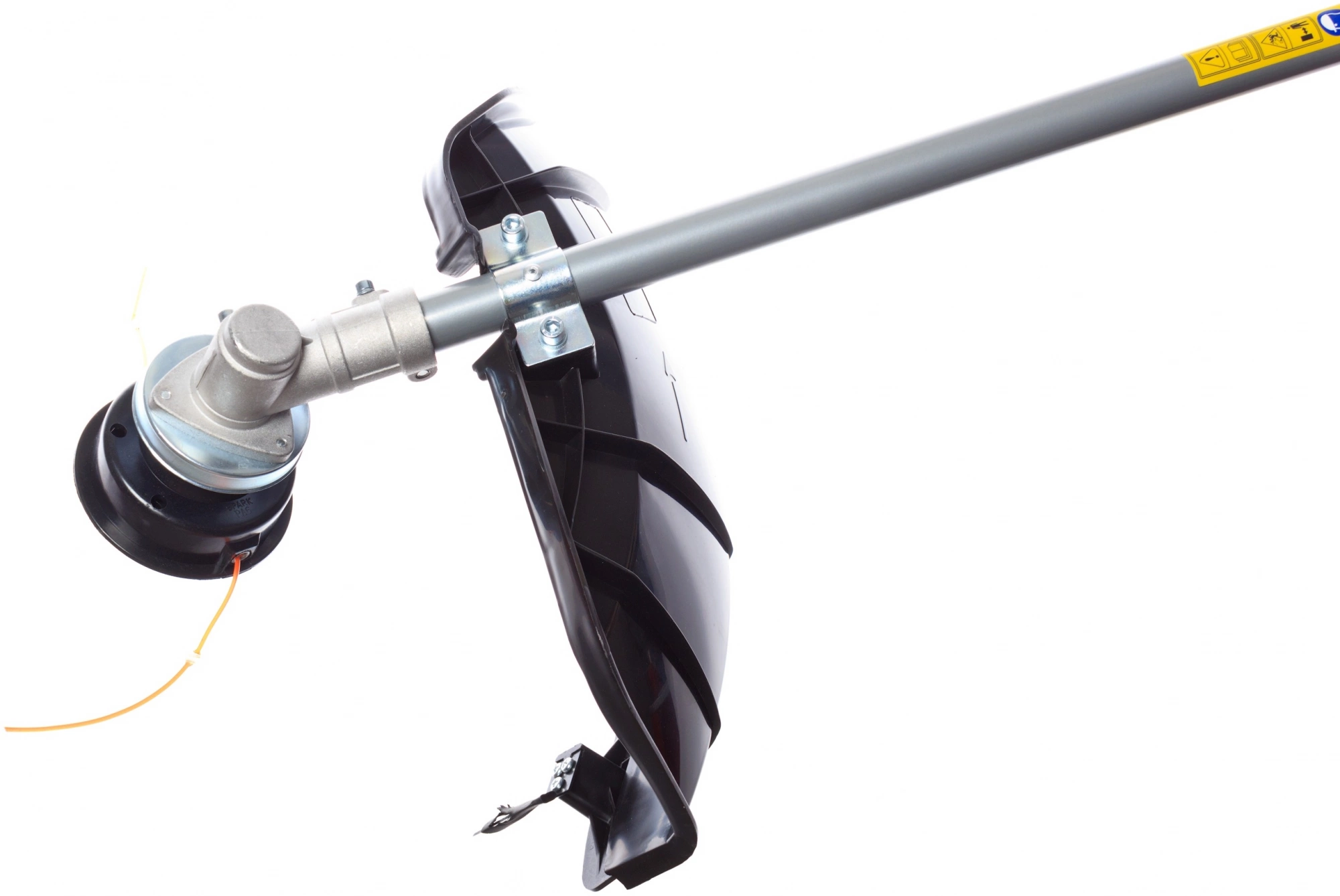 2 оснастки: леска и нож; Сбалансированная конструкция; Питание от бытовой сети - отсутствие токсичных выхлопов, низкий уровень шума; Защита двигателя от перегрева; Защита от случайного включения.