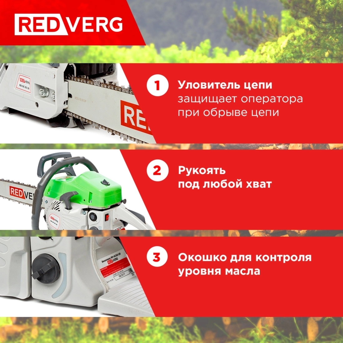 Винт регулировки подачи цепного масла; Облегченный старт; Воздушный фильтр большого размера; 4-х канальная система впрыска бензосмеси; Хромированные стенки цилиндра.