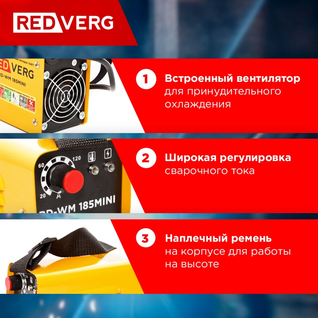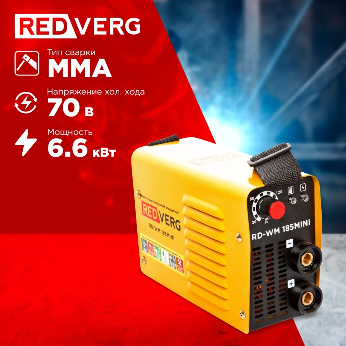 Сварочный аппарат, кабель заземления с зажимом, электрододержатель, инструкция по эксплуатации.
