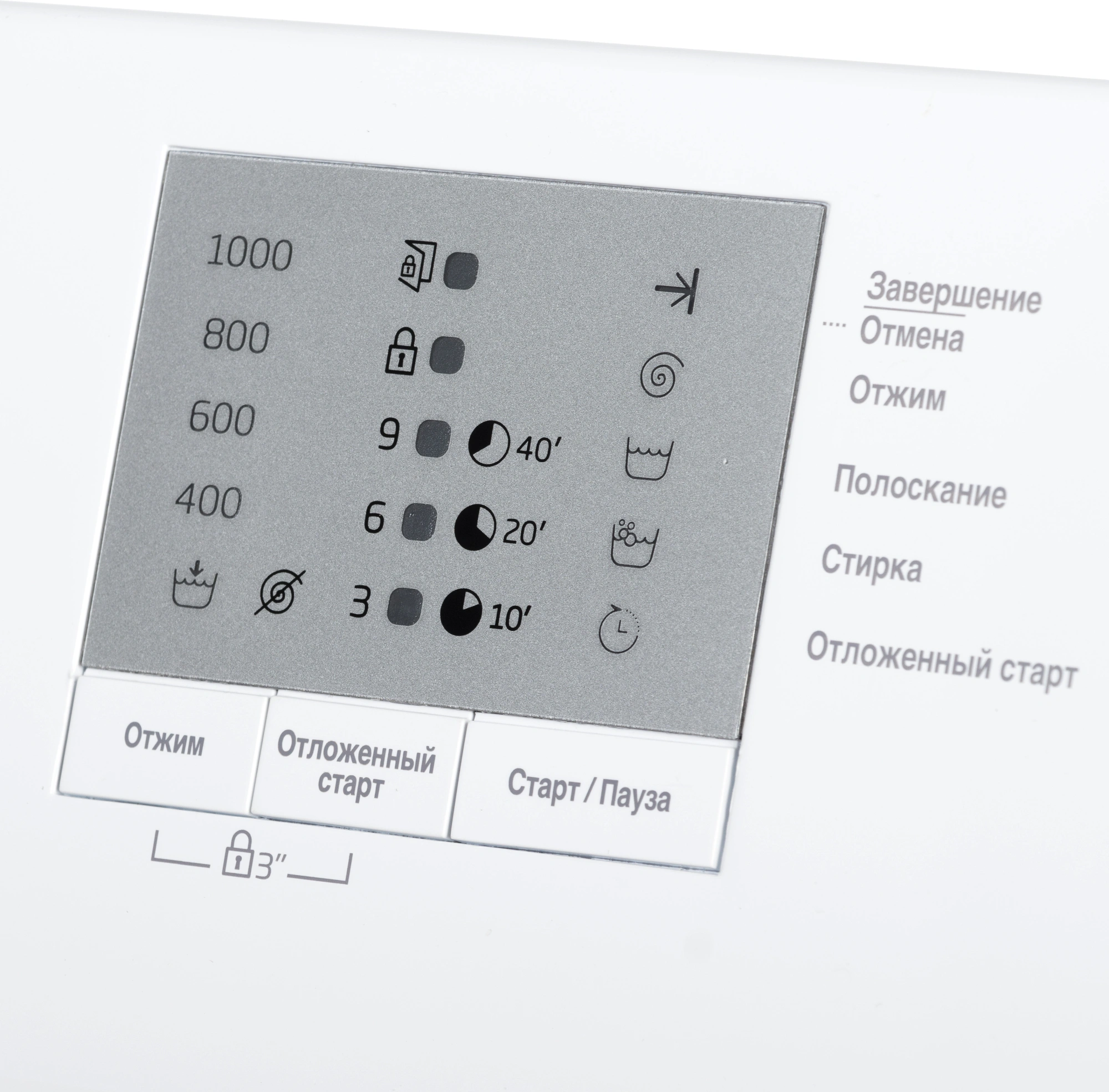 блокировка от случайного нажатия, защита от детей, контроль дисбаланса, контроль уровня пены, таймер отсрочки запуска