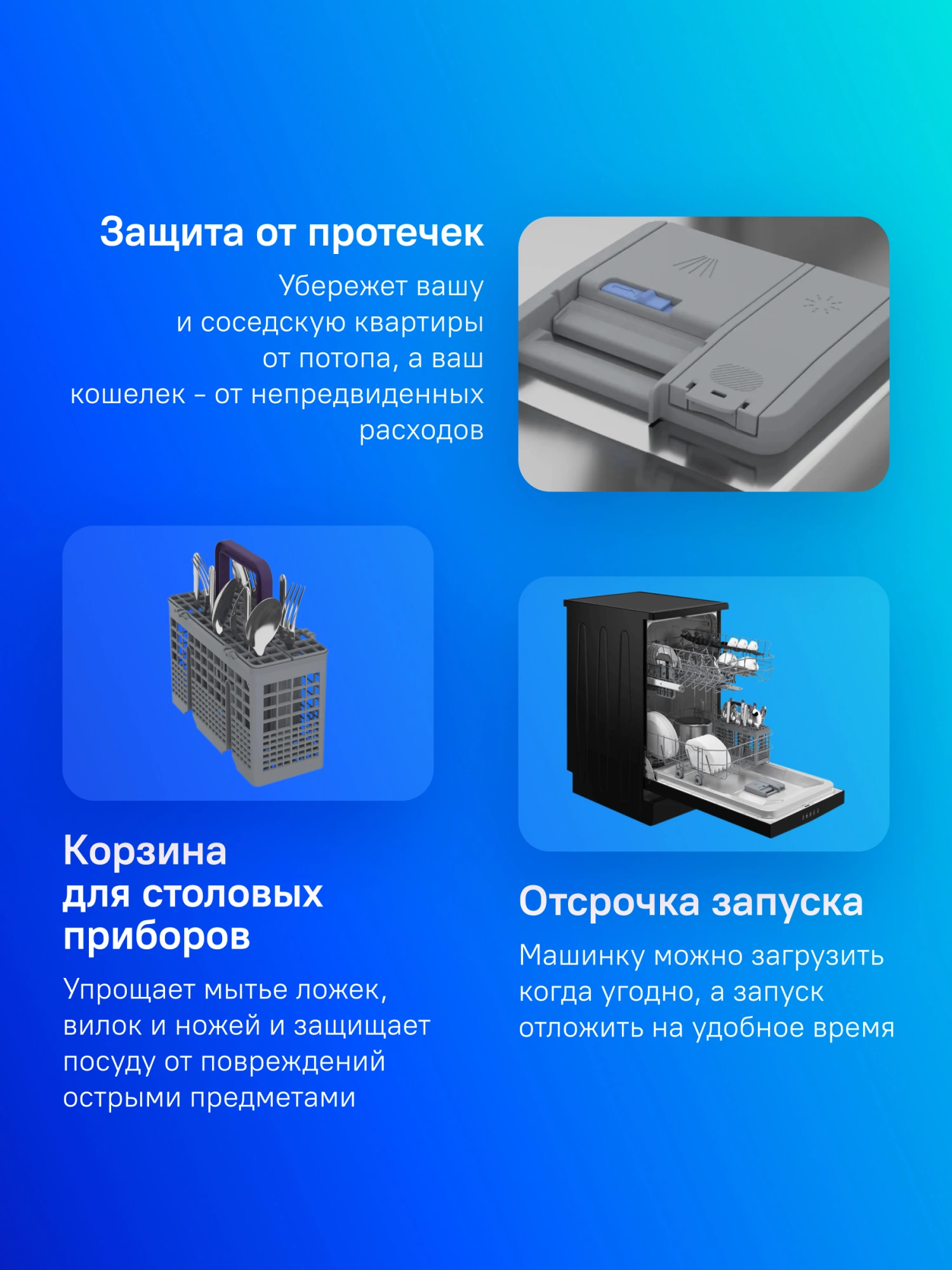 защита от протечек, таймер отсрочки запуска
