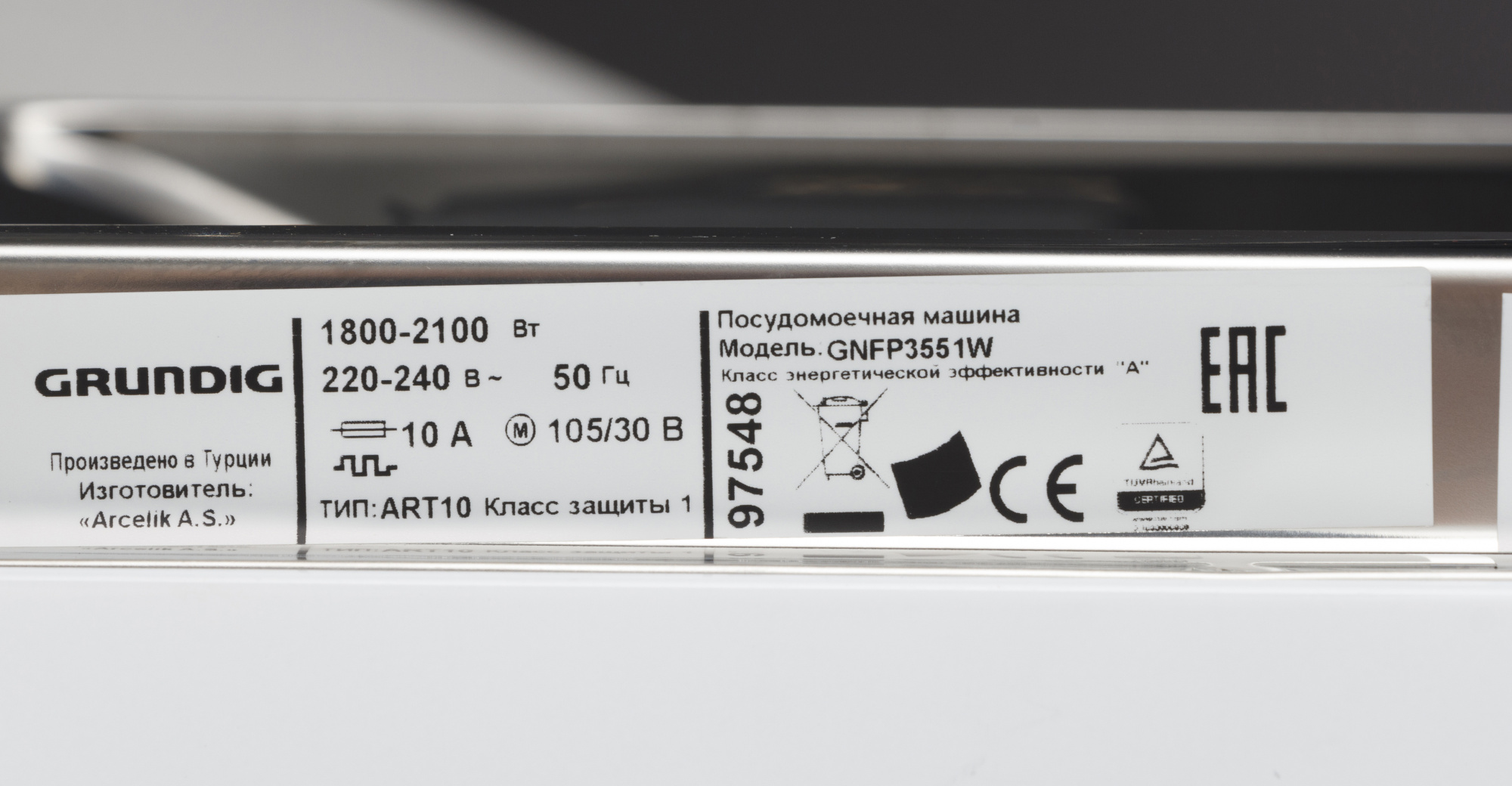 Тип посудомоечной машины
