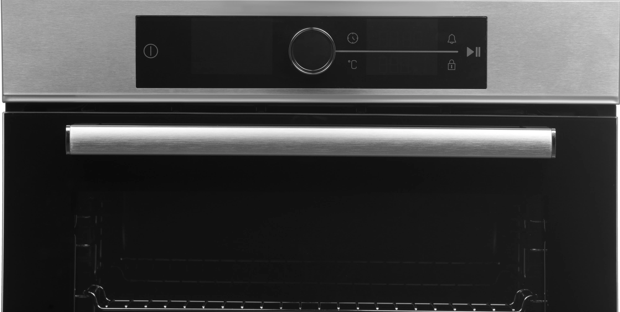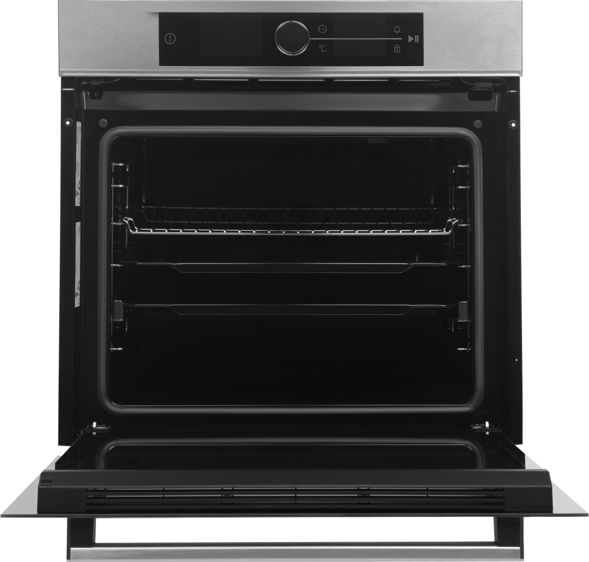 дисплей, полностью стеклянная внутренняя поверхность дверцы духовки, телескопические направляющие, электронный программатор