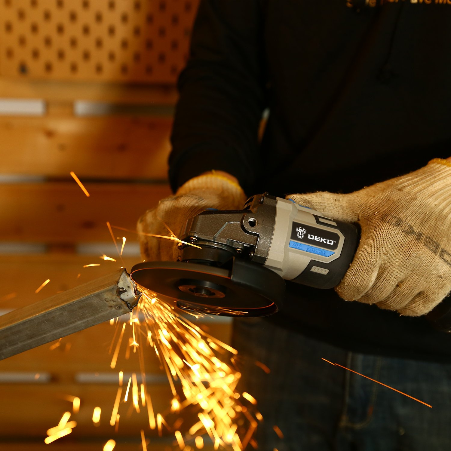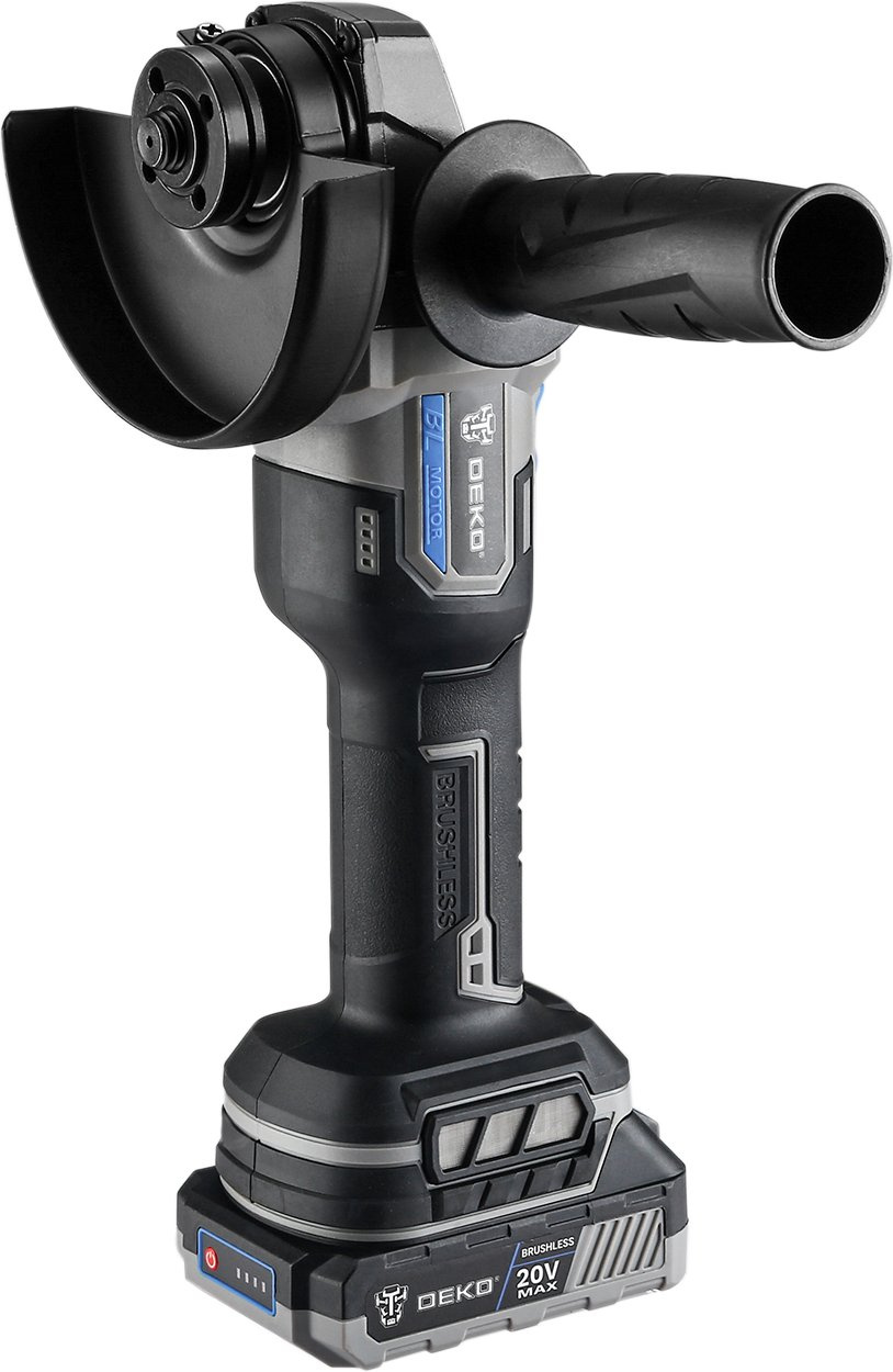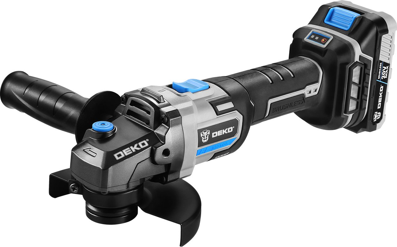 Углошлифовальная машина бесщеточная DEKO DKAG20 совместима с аккумуляторами Makita 18В Li-Ion тип BL-1830, BL-1840, BL-1850, BL-1860. Предназначена для резки, шлифовки, черновой обработки и полировки металлов, камней и керамических изделий с соответствующими насадками.