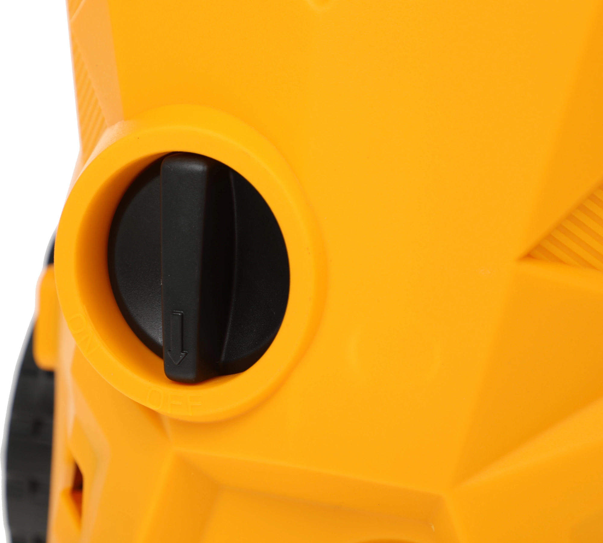 Мойка обладает функцией защиты от случайного запуска и режимом автоматического выключения, если долго не используется. Колеса и ручка для перемещения позволяют легко и быстро переносить мойку к местам выполнения работ. Модель оснащена катушкой и держателем для аккуратного хранения провода и шланга.