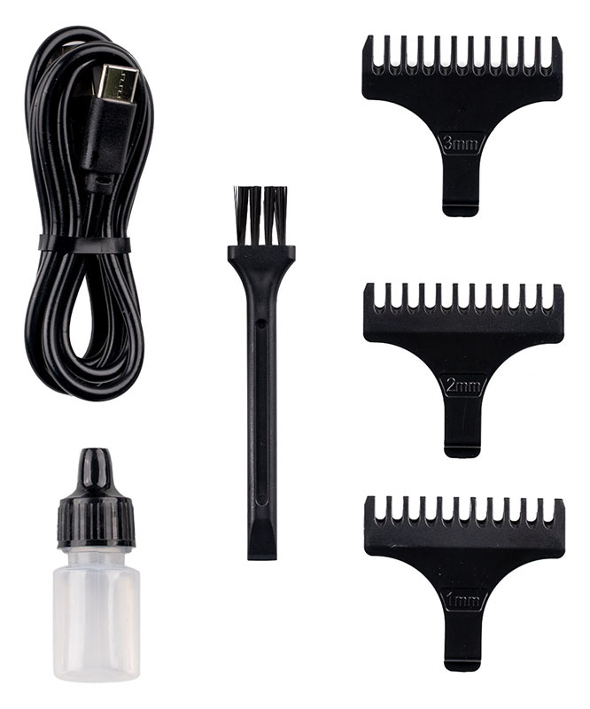 3 насадки-расчески (1,2,3 мм). Ширина лезвия: 40 мм. Длина USB Type-C кабеля в комплекте: 100 см