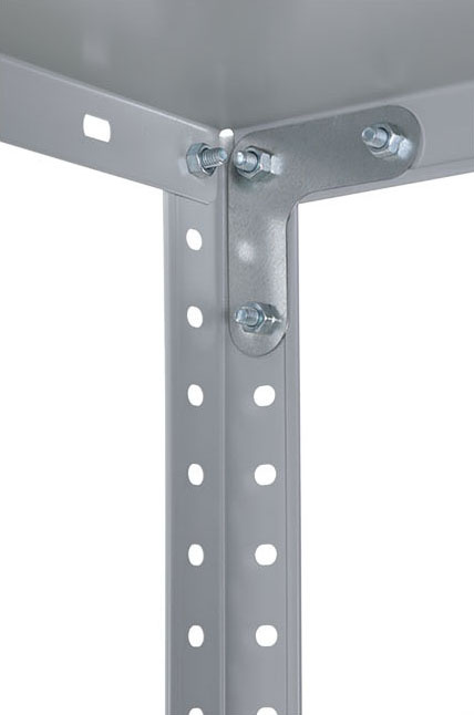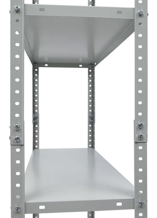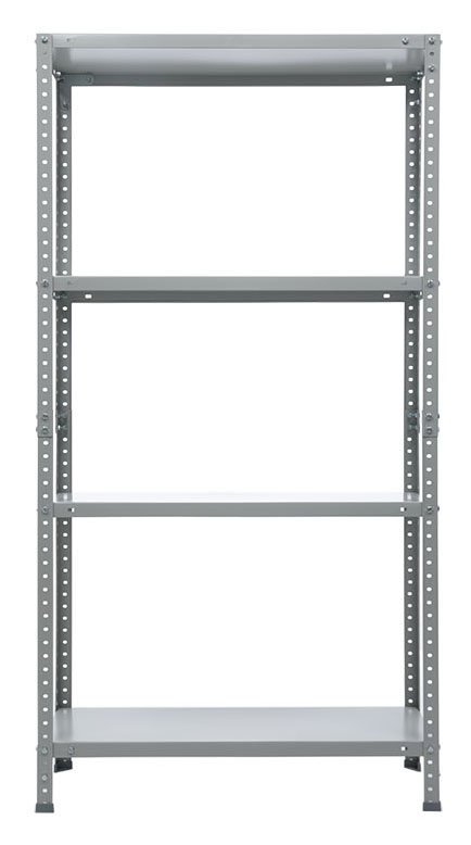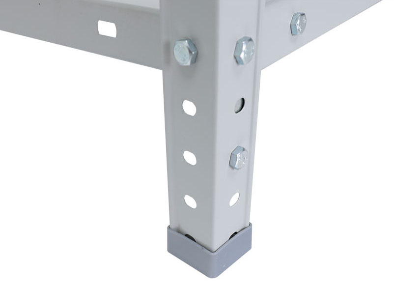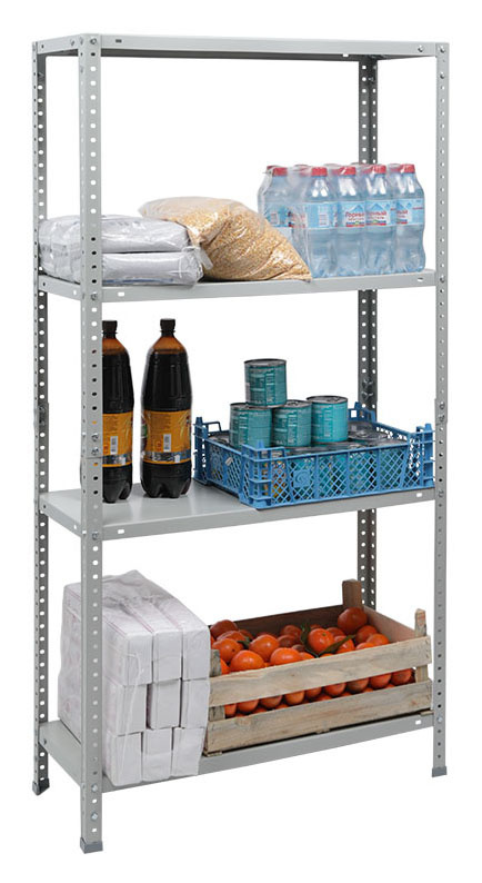 Предназначен для хранения различных грузов дома, в офисах, гаражах, подсобках, а также на небольших складах. Все элементы стеллажа покрашены в серый цвет (RAL 7038). Быстрая, легкая сборка. Соединения стойки и полки при помощи болтов с гайками