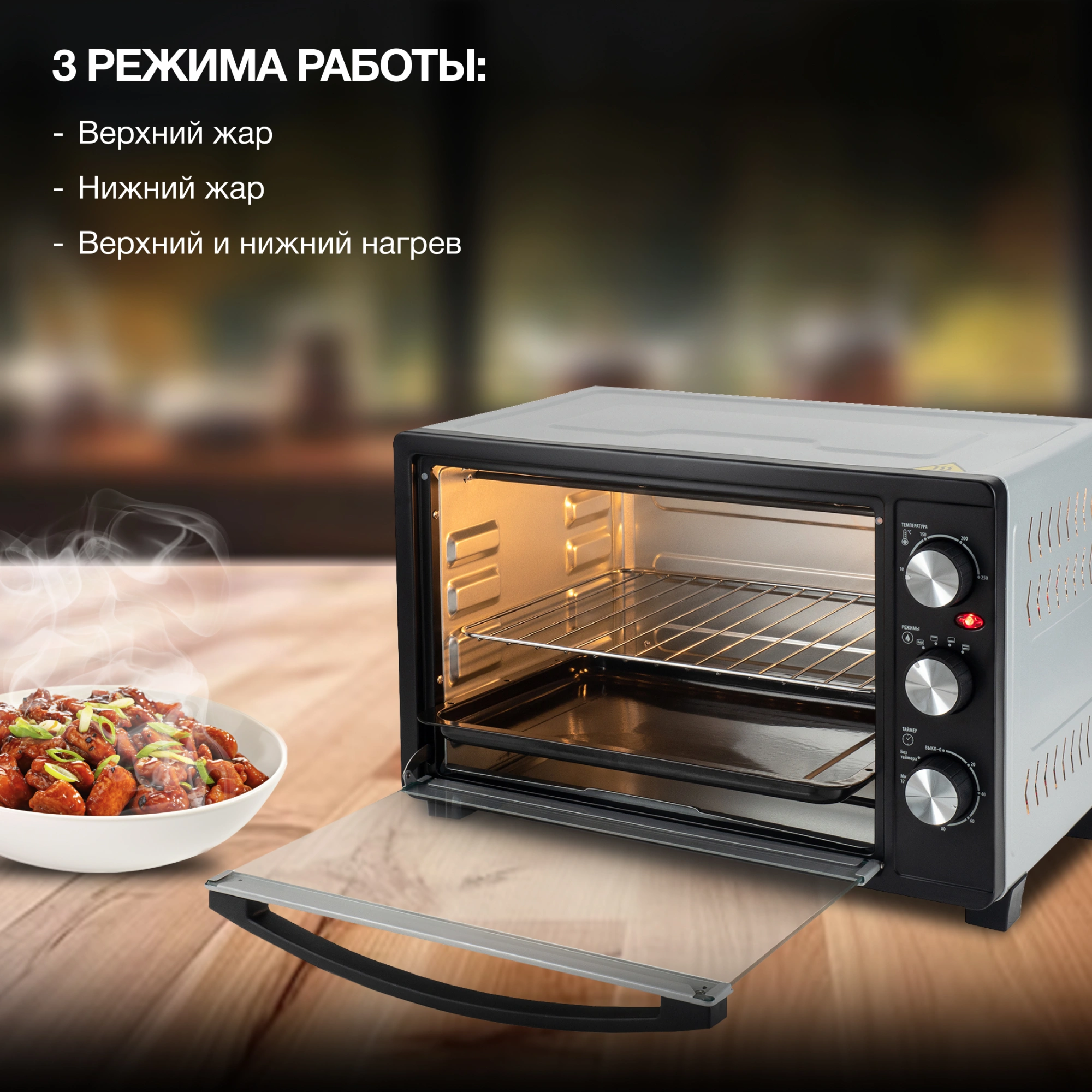 Для того, чтобы понять, готова ли печь Hyundai MIO-HY074 к работе, в неё интегрирован эргономичный индикатор. Она быстро прогревается до рабочей температуры благодаря используемой мощности 1500 Ватт. Внутренний объём прибора составляет 30 литров. Его вполне достаточно для приготовления даже крупного блюда, рассчитанного на несколько человек.