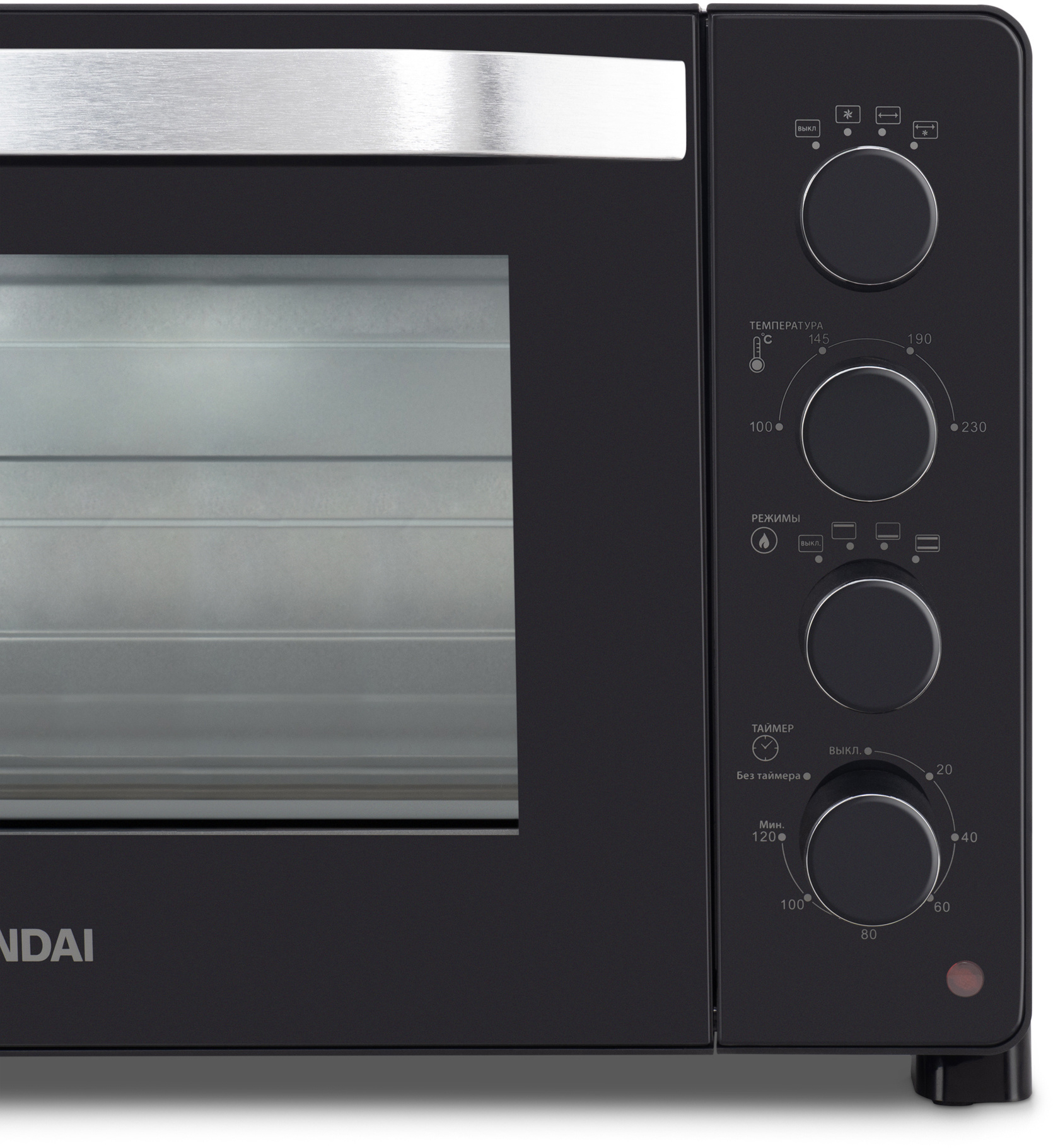 Компактная мини-печь Hyundai MIO-HY081 в стильном хайэнд-дизайне принесет радость готовки даже самых требовательных к термической обработке рецептов на кухню любого размера.