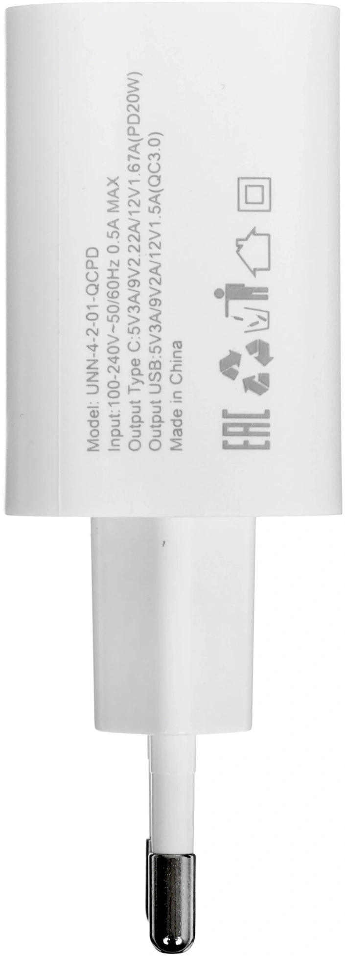 18W 3A+2.4A (PD+QC) USB-C/USB-A универсальное бел...