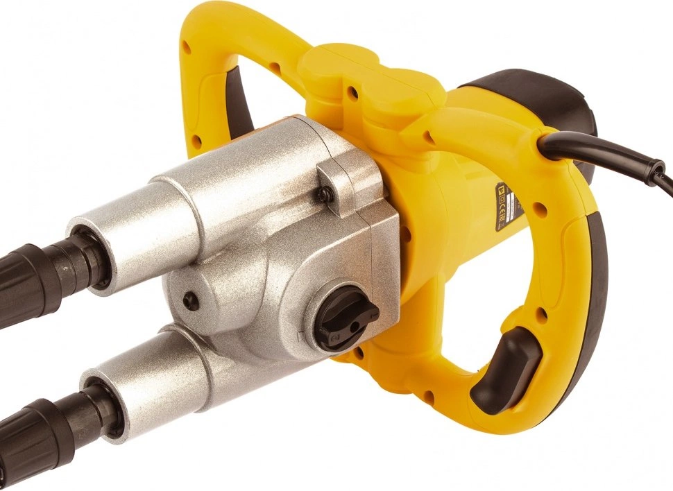 Миксер строительный, насадка 2 шт., удлинитель насадки 2шт., комплект запасных щеток, инструкция по эксплуатации, гарантийный талон, коробка упаковочная.