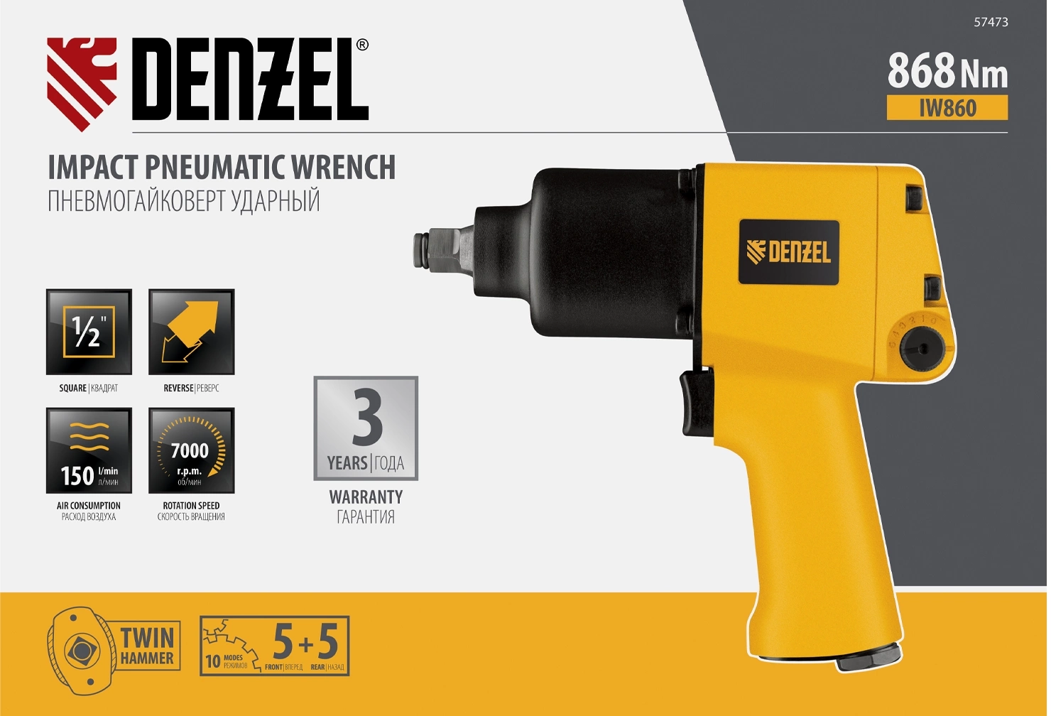 Двойной Молот (Twin Hammer), удобный корпус для комфортной работы, 10 режимов (5 вперед + 5 назад), набор из 8 головок, штуцер в комплекте, удобный кейс для переноски пневмоинструмента.