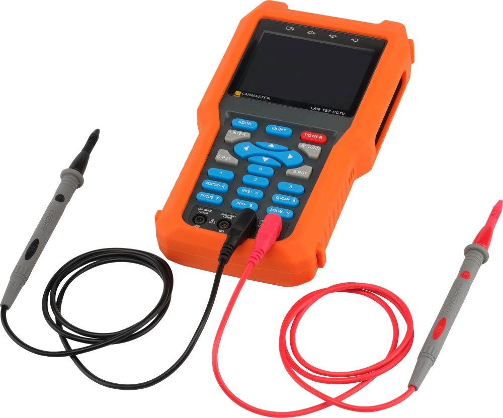 Главный блок, индуктивный щуп, ответная часть, наушники, чехол для хранения, ремешок для переноски, USB micro шнур, зарядное устройство, шнур питания камеры от тестера, адаптер подключения к шине RS-485, адаптер подключения к аудиопорту, шнур BNC(m)-BNC(m)