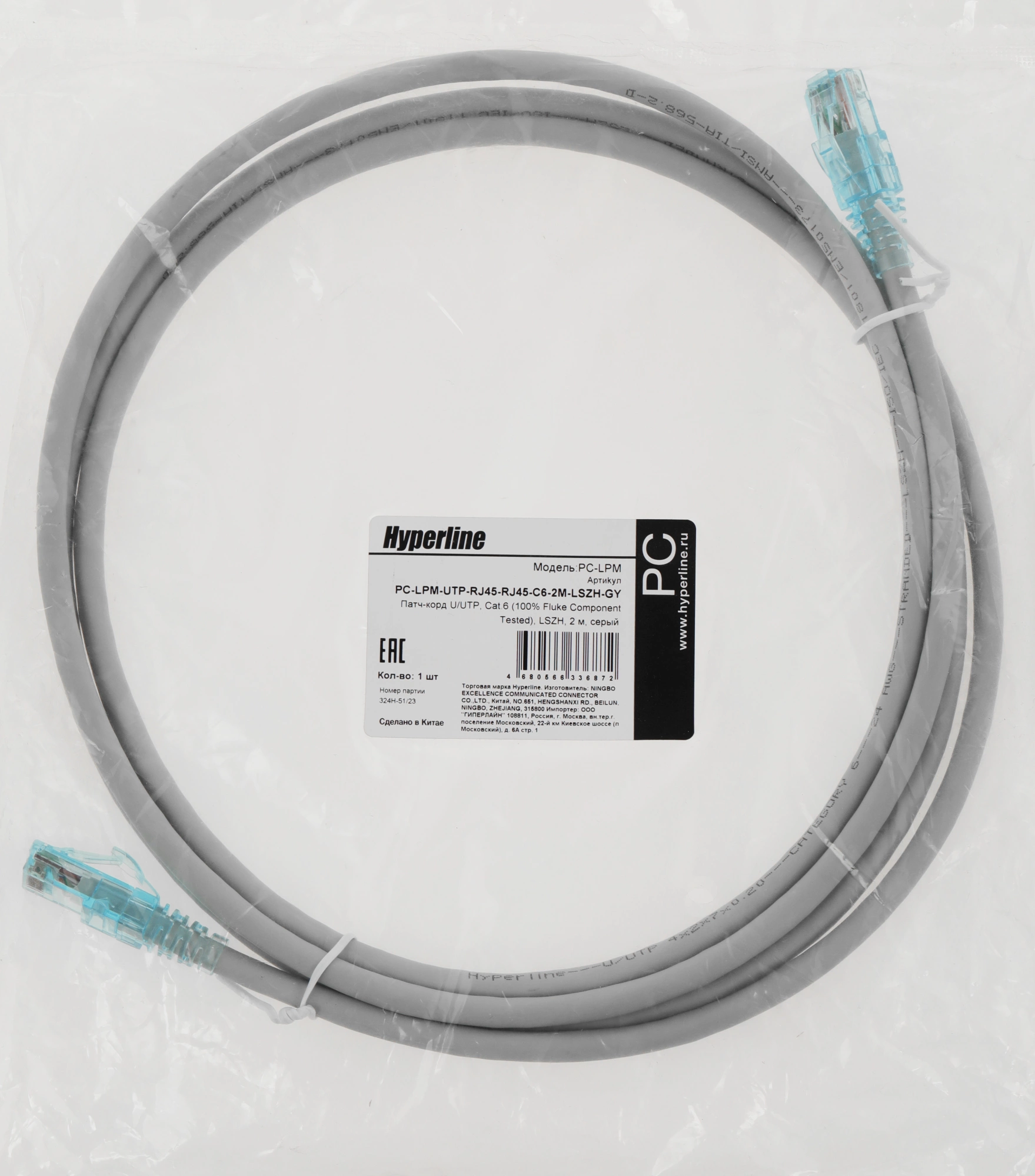 UTP RJ-45 вил.-вилка RJ-45 кат.6 2м серый LSZH 24A...