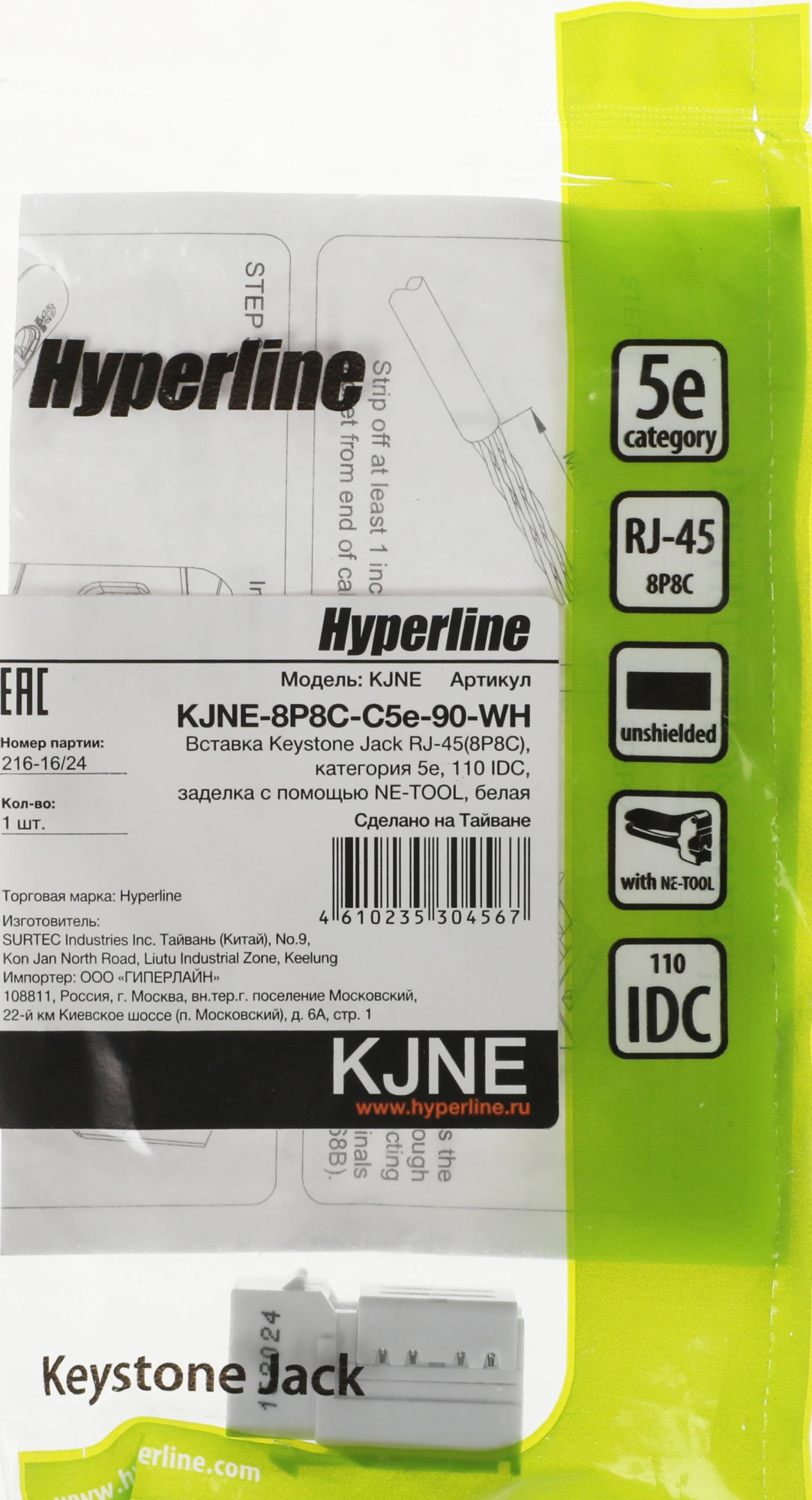 Модуль Hyperline KJNE-8P8C-C5E-90-WH информ. KeystoneRJ45 кат.5E UTP бел. (упак.:1шт)