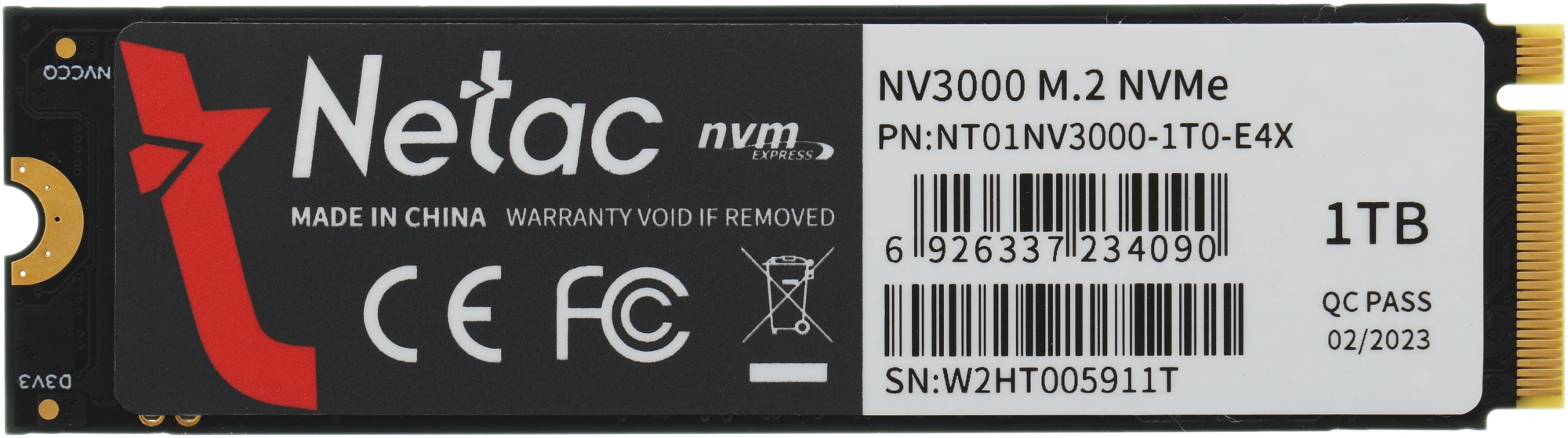 Накопитель SSD Netac PCIe 3.0 x4 1TB NT01NV3000-1T0-E4X