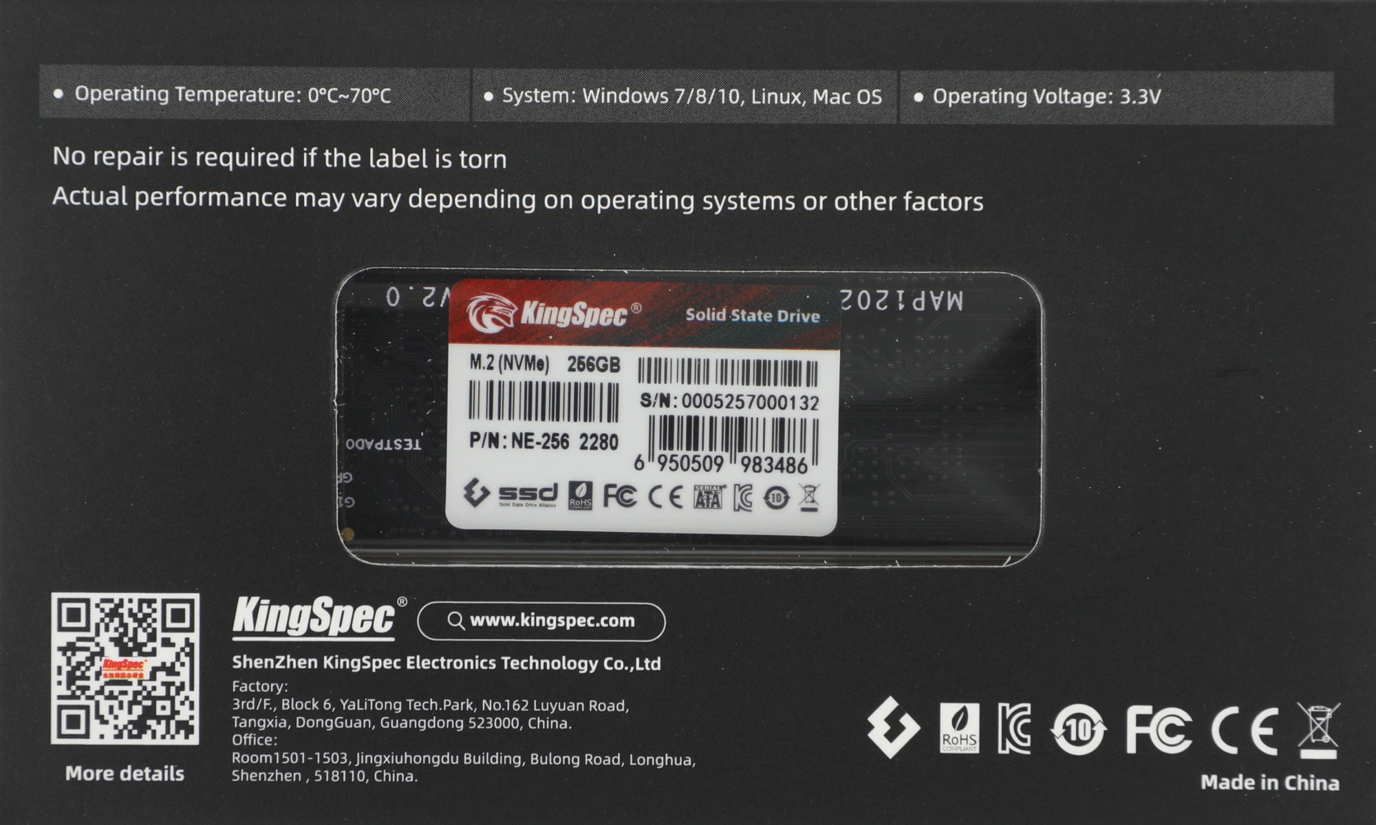 Накопитель SSD Kingspec PCIe 3.0 x4 256GB NE-256