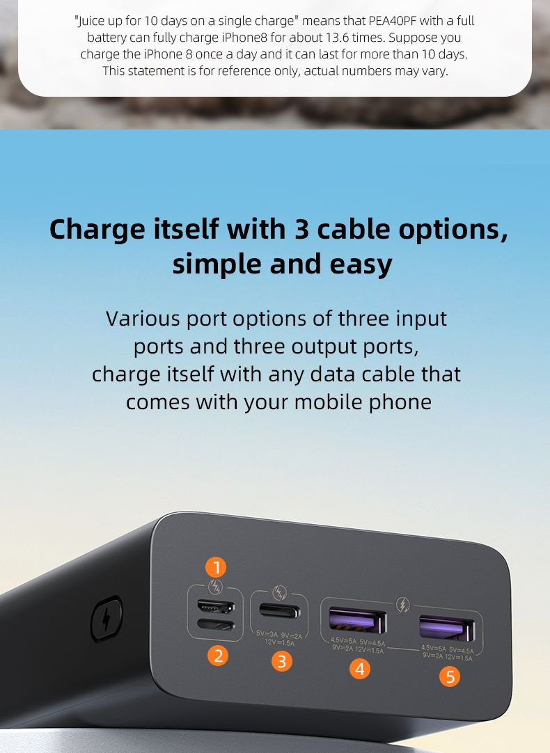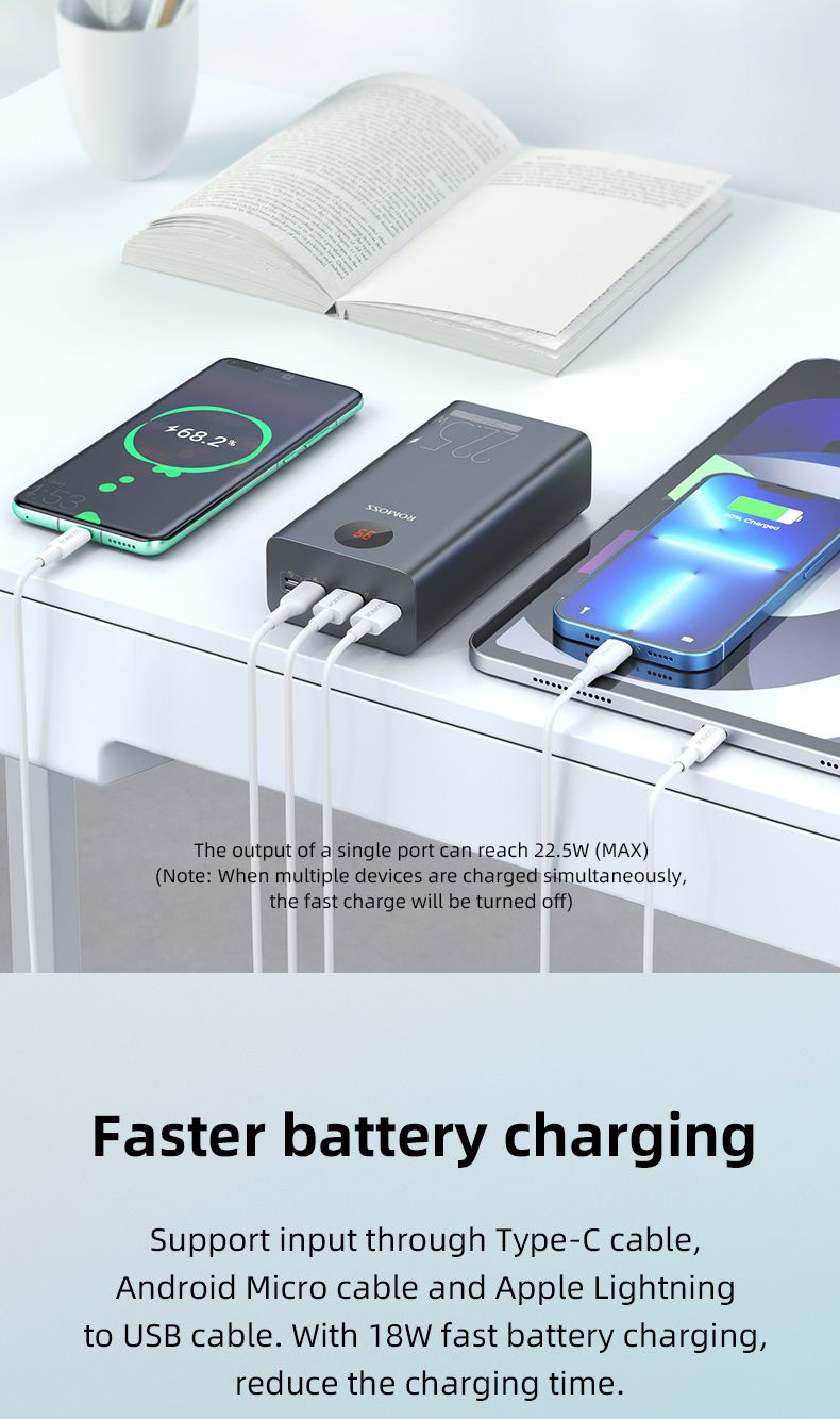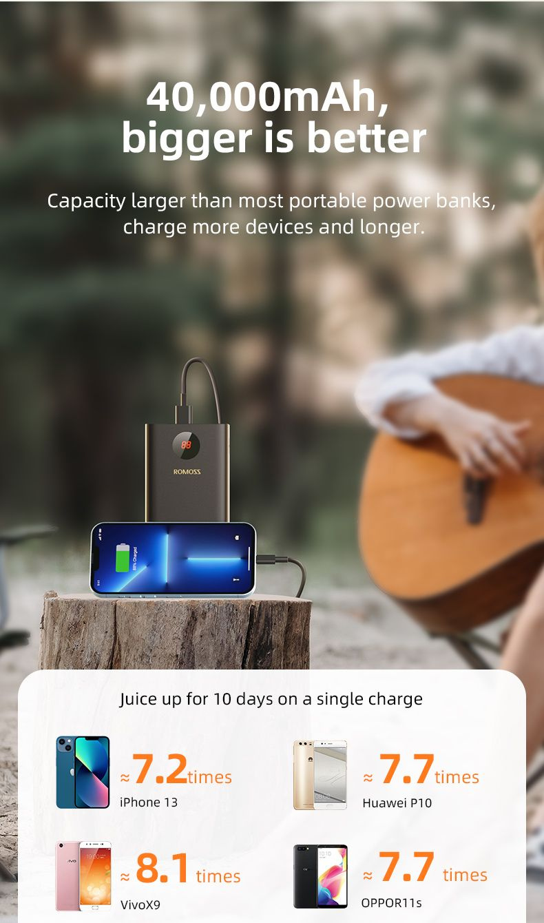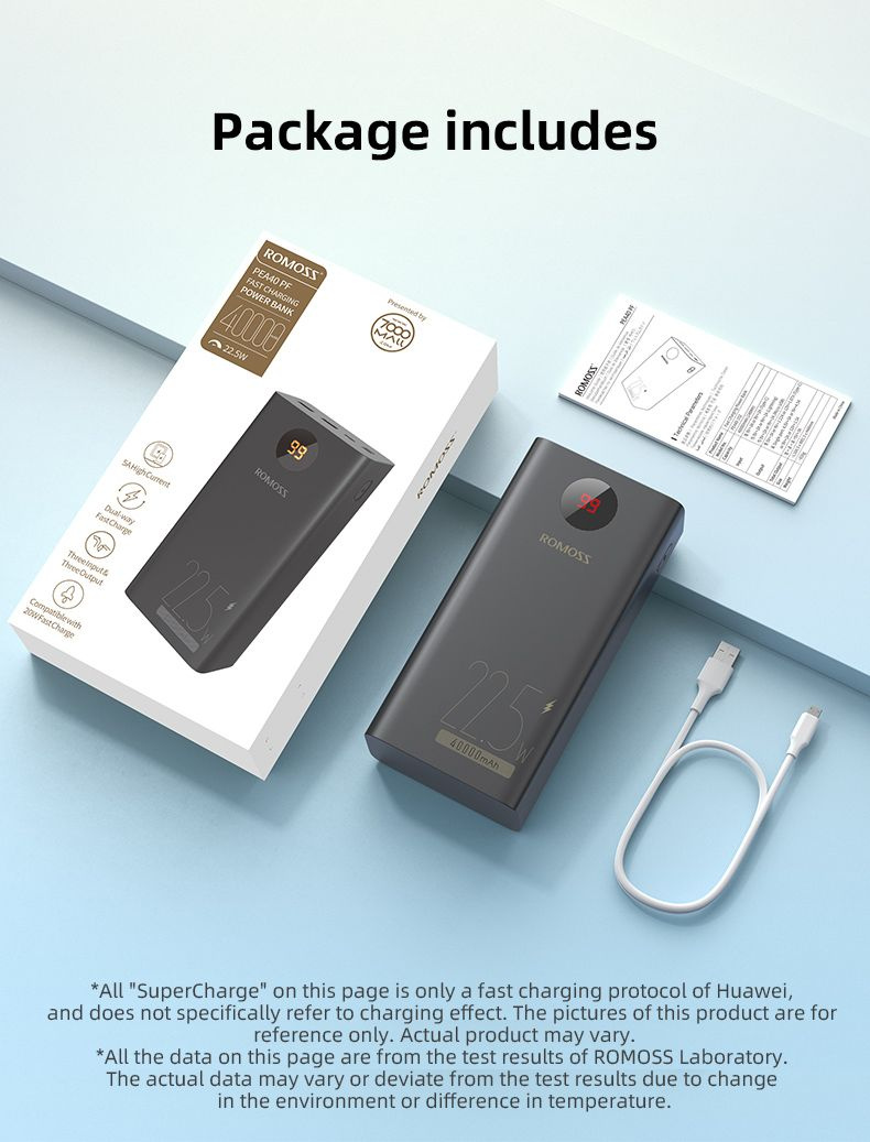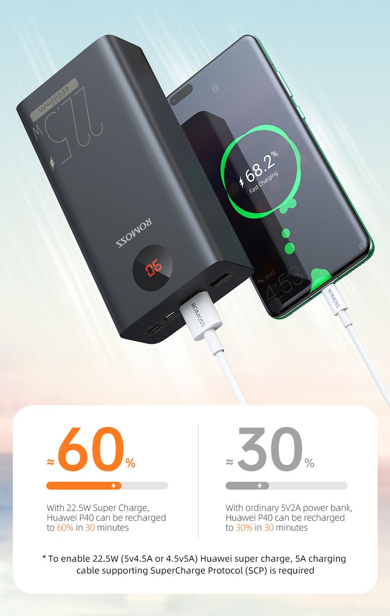Внешний аккумулятор Romoss PEA40PF поддерживает множество протоколов и оборудован системой защиты для безопасной зарядки подключенного устройства. Поддерживает функцию быстрой зарядки в обе стороны.