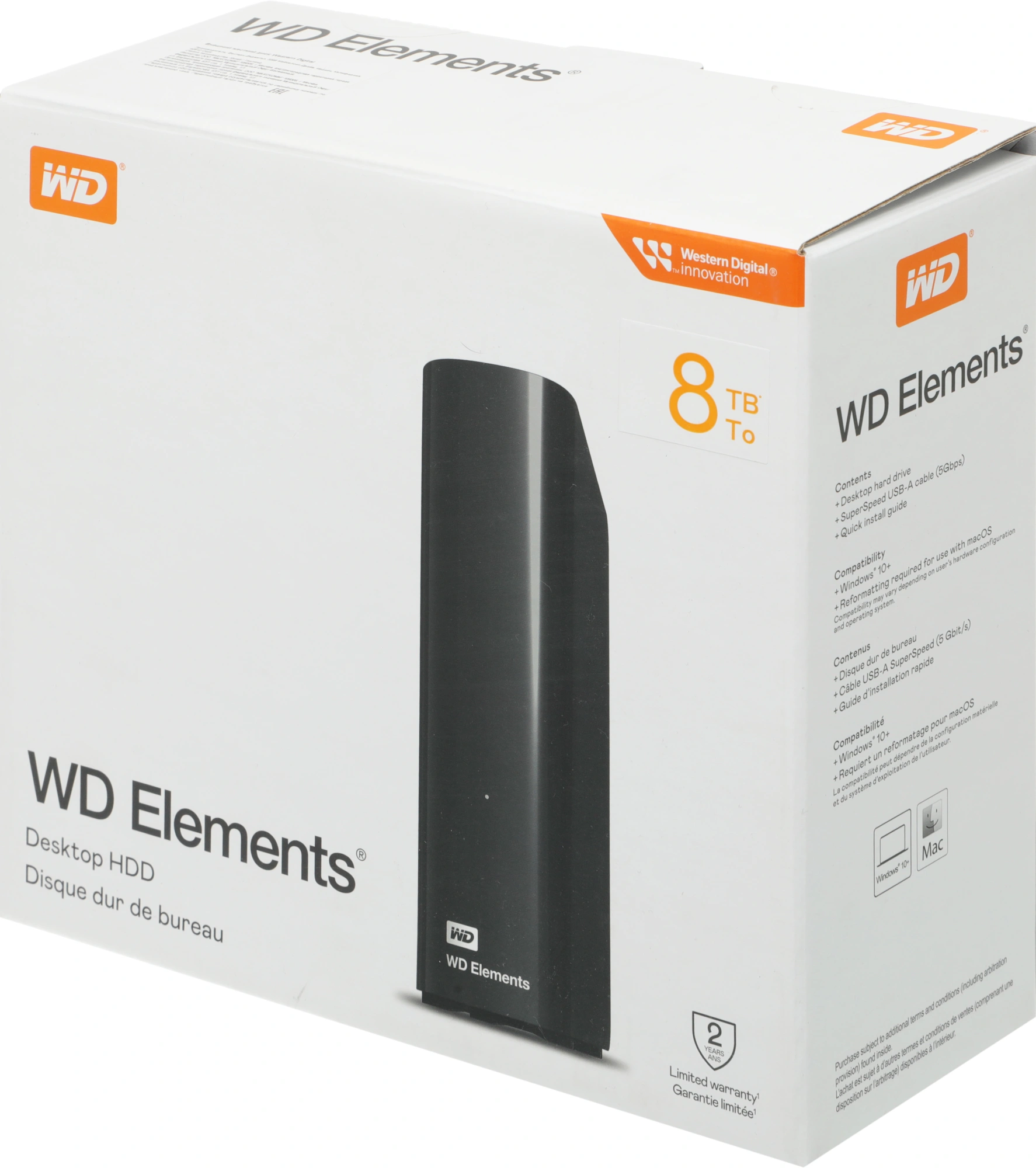 Настольный жесткий диск WD Elements, Кабель SuperSpeed USB-A (5 Гбит/с), Сетевой блок питания, Краткое руководство по установке