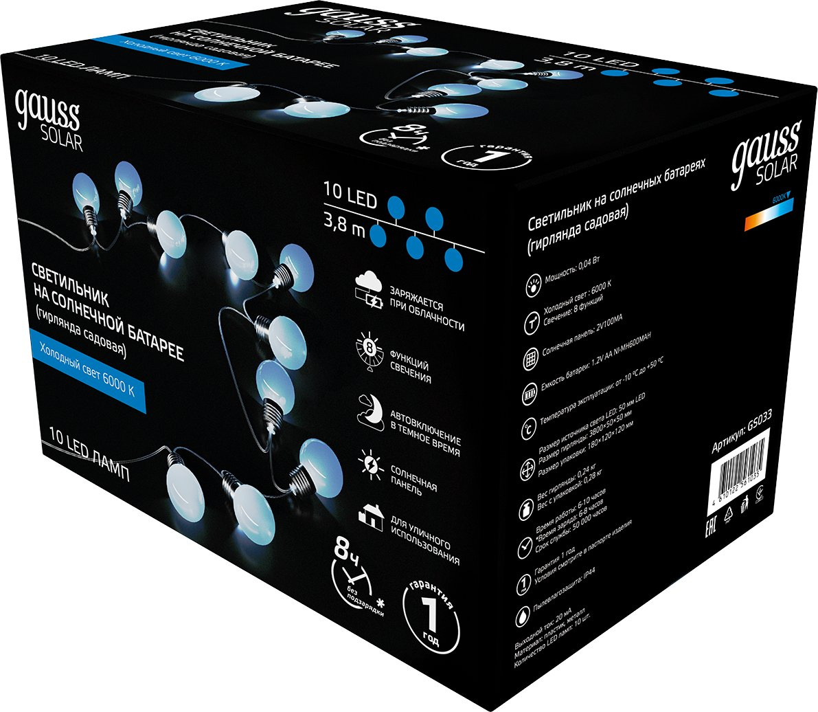 нить шарики 10лам. дл.3.8м