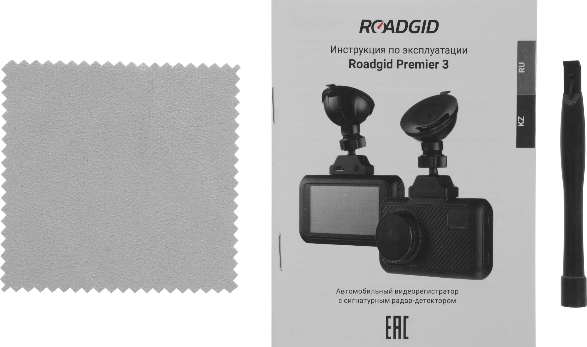 Видеорегистратор, АЗУ с запасным предохранителем, крепление на присоске, доп. крепление на скотче, CPL, салфетка, Лопаточка для провода З.У., клипсы для провода З.У., руководство