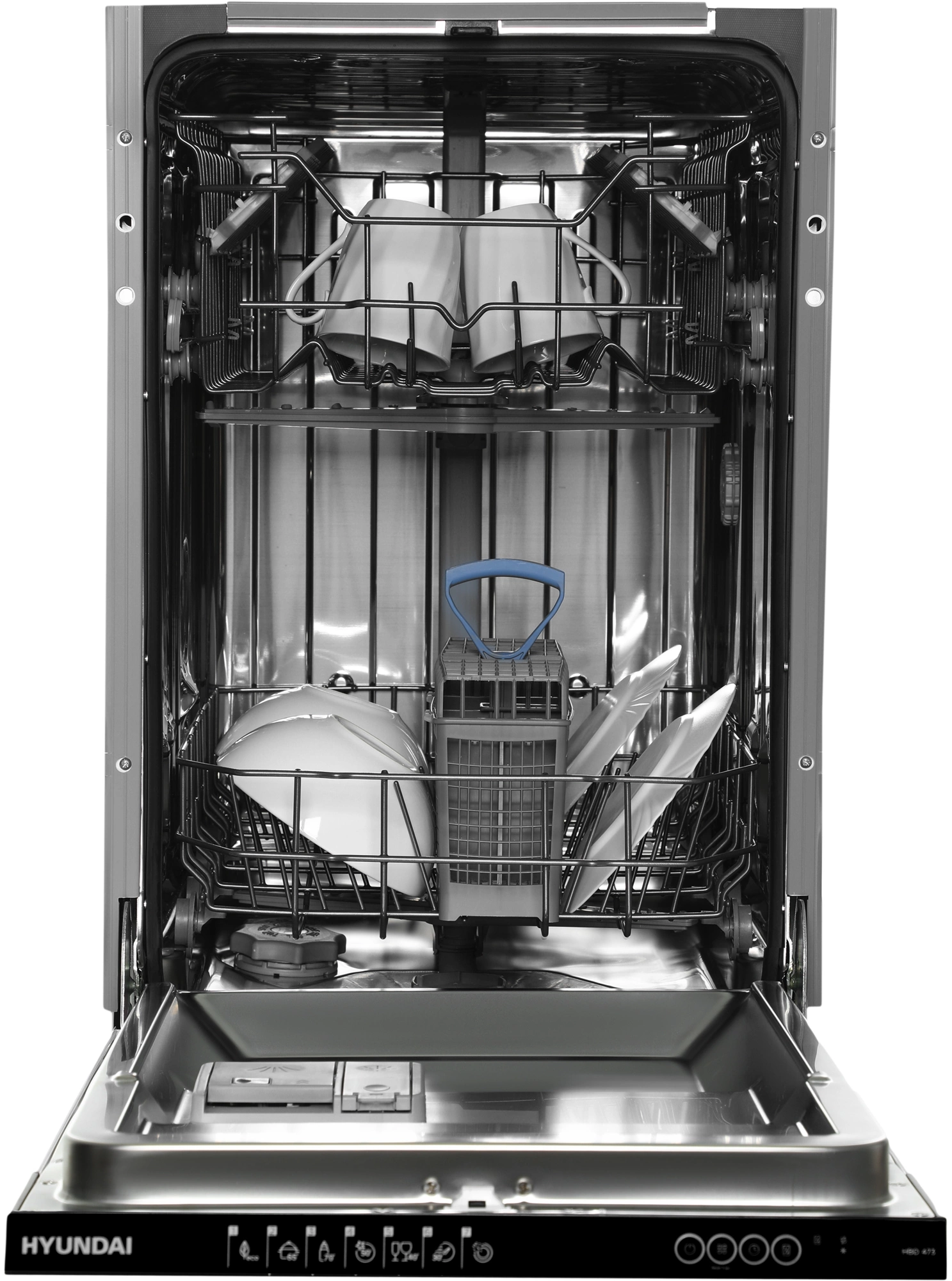 Посудомоечная машина Hyundai HBD 473 не оставит от грязи на посуде и следа.