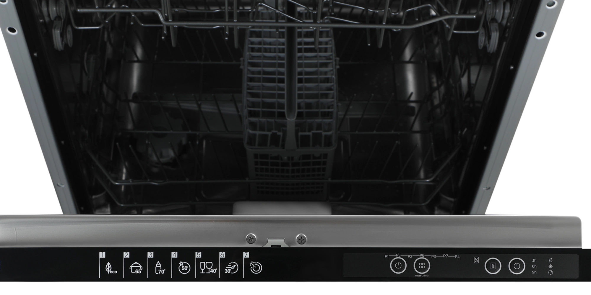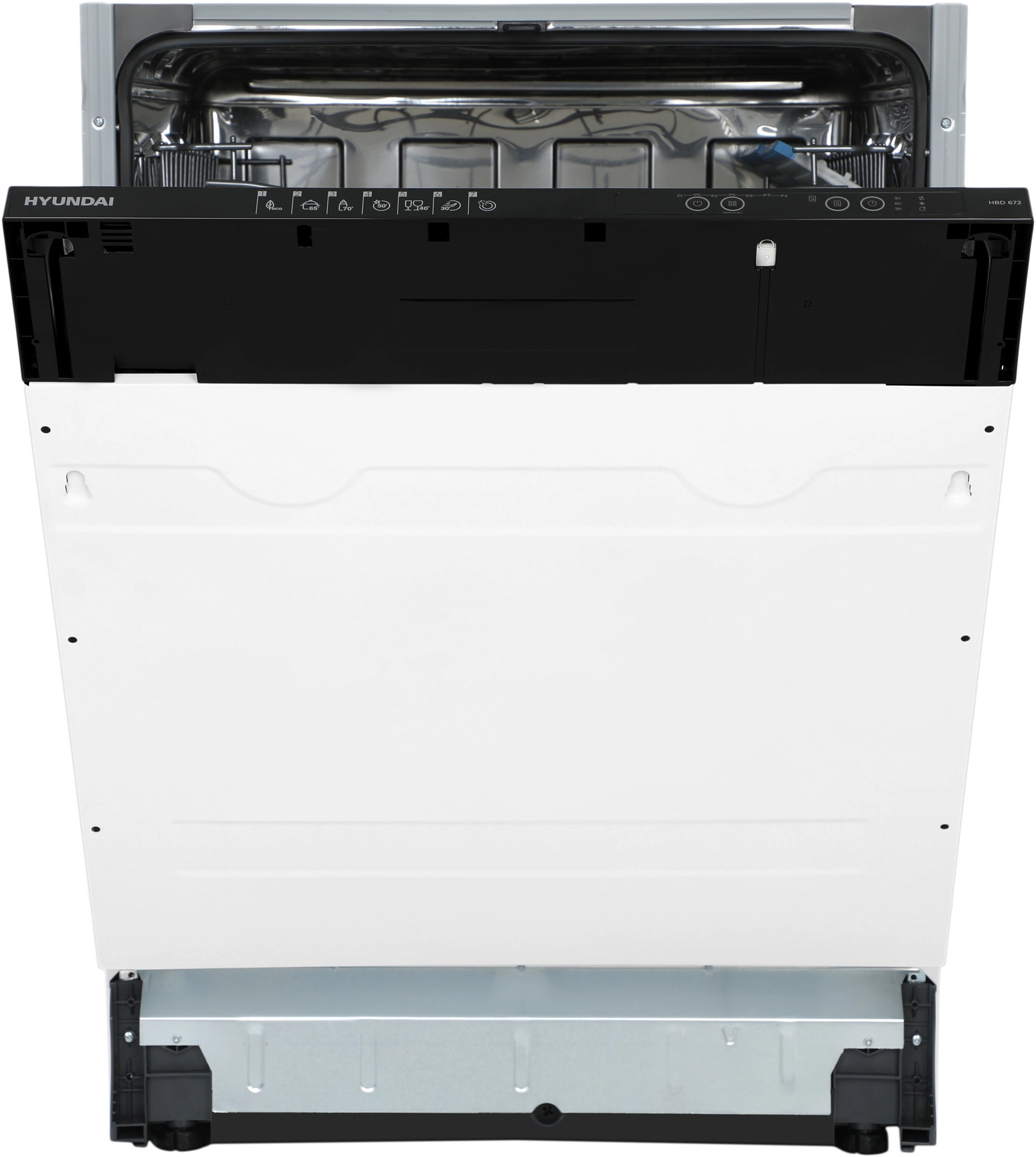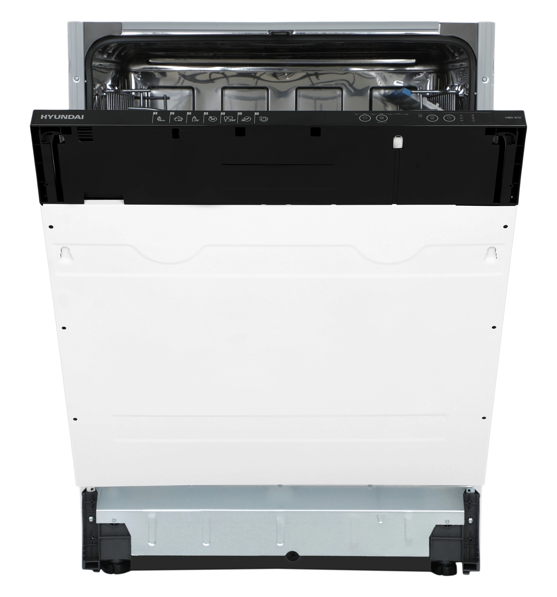 Прибор полностью управляется электроникой и имеет конденсационный тип сушки. Все органы для изменения типа очистки вынесены на внутреннюю часть дверцы. Для каждой кнопки рядом есть своя пиктограмма – так что с настройкой справится любой за считанные минуты. Кроме того, в комплекте с Hyundai HBD 672 поставляется инструкция полностью на русском языке, чтобы исключить какие-либо вопросы.