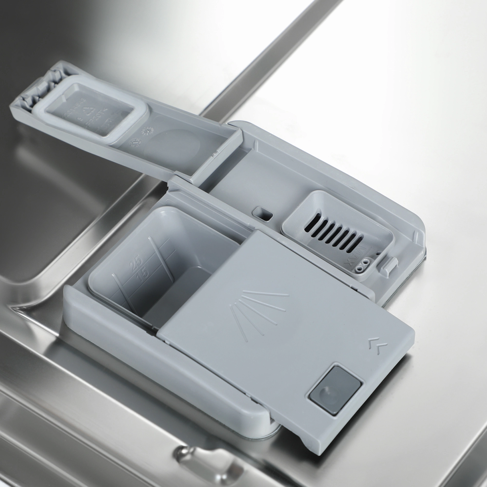 В Hyundai HBD 672 допускается применение современных бытовых средств «3 в 1», а два индикатора внутри машинки показывают, залит ли ополаскиватель и засыпана ли соль. Качество мойки и сушки прибора оцениваются высоким классом А, что говорит в пользу эффективности его работы.