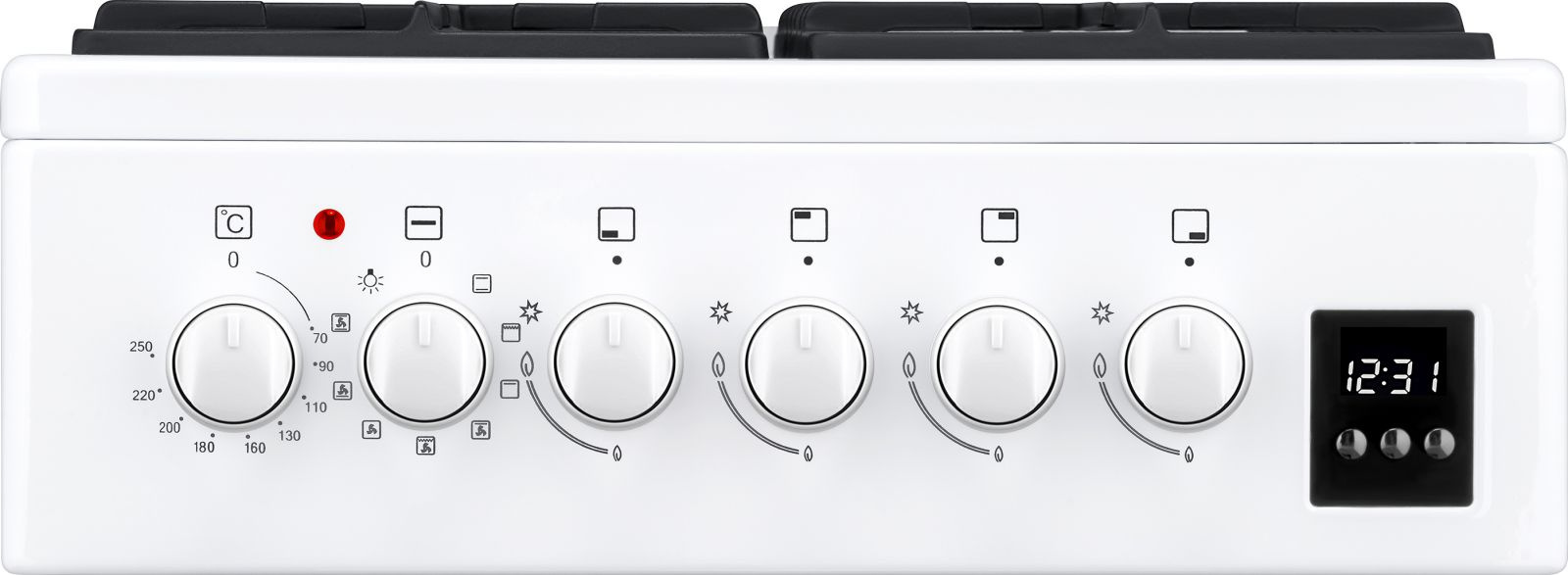 Гриль, Гриль с конвекцией, Предварительный нагрев, Обычный режим, Обычный режим с конвекцией, Холодная конвекция, Режим нижнего ТЭНа с конвекцией, Предварительный нагрев с конвекцией, Освещение жарочного шкафа