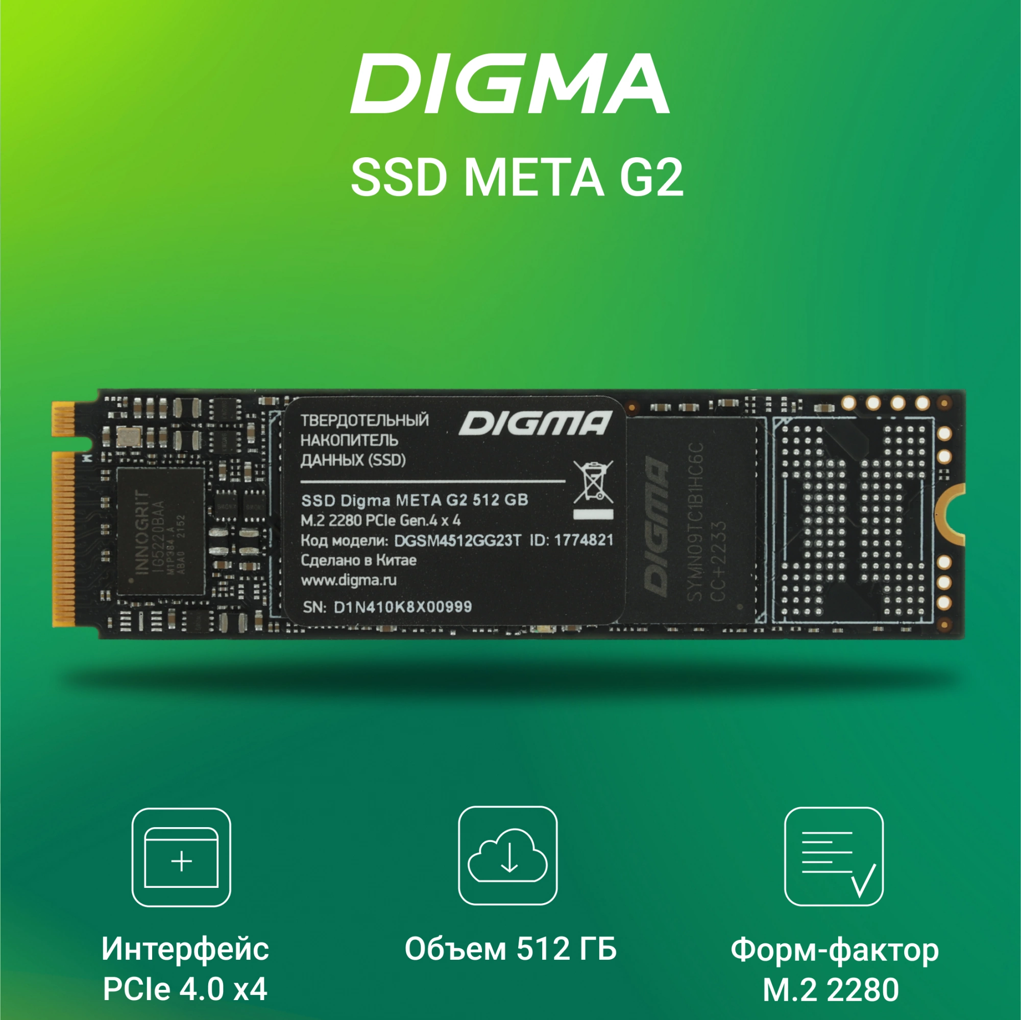 Объем устройства составляет 512 ГБ. Этого с запасом хватит для хранения программных файлов и игр. Digma META G2 предлагает впечатляющие показатели ресурса TBW – до 500 ТБ.