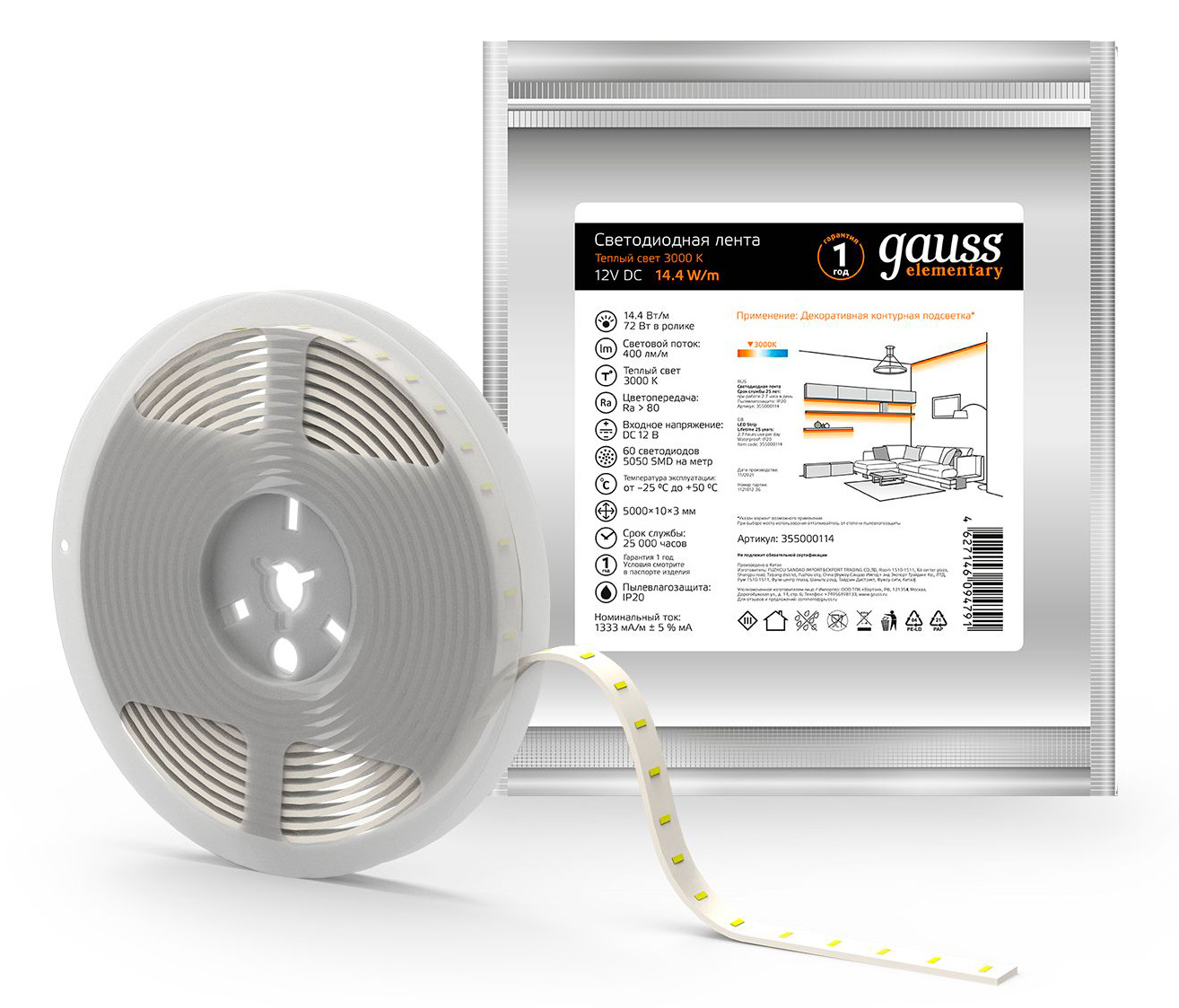 Экономичная лента серии Elementary представлена исполнениями теплого, холодного, синего, красного и зеленого свечения со степенью защиты IP20 и IP66. Прекрасно подойдет для интерьерного освещения коридоров, лоджий, мебели, ниш, потолков, плинтусов, ванных комнат и других помещений.