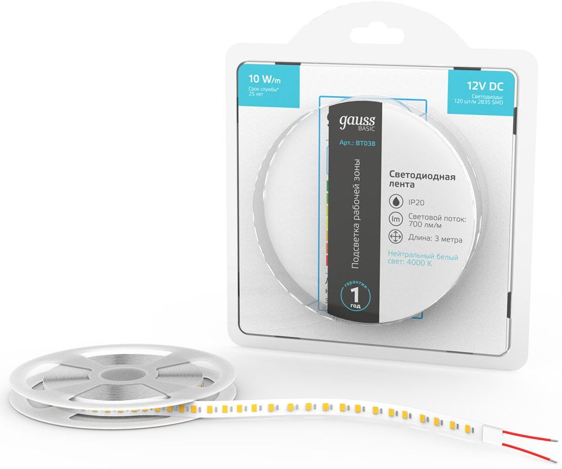 Лента Gauss Basic 12V 10W/m 700lm/m 4000K IP20 LED 3m BT038 способна решить ряд задач связанных как с декоративным освещением помещений, так и с экстерьерной подсветкой.
