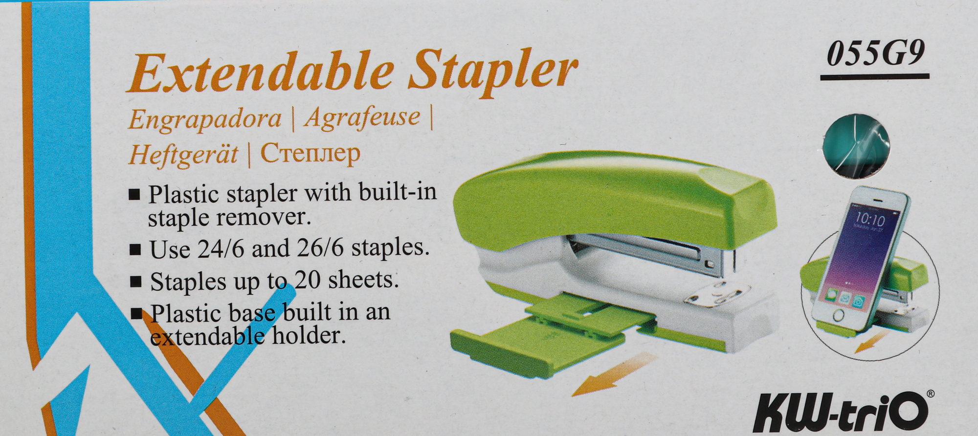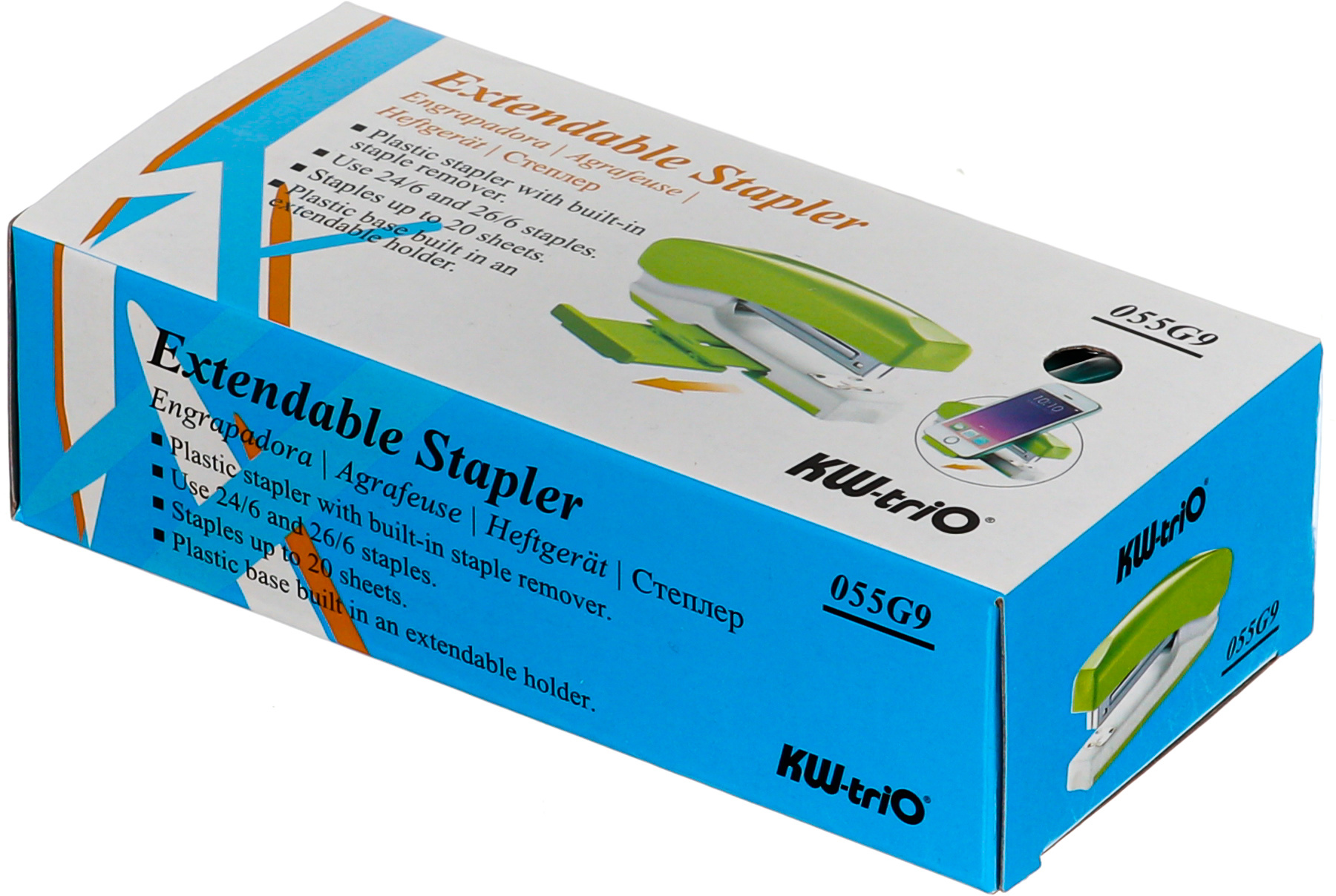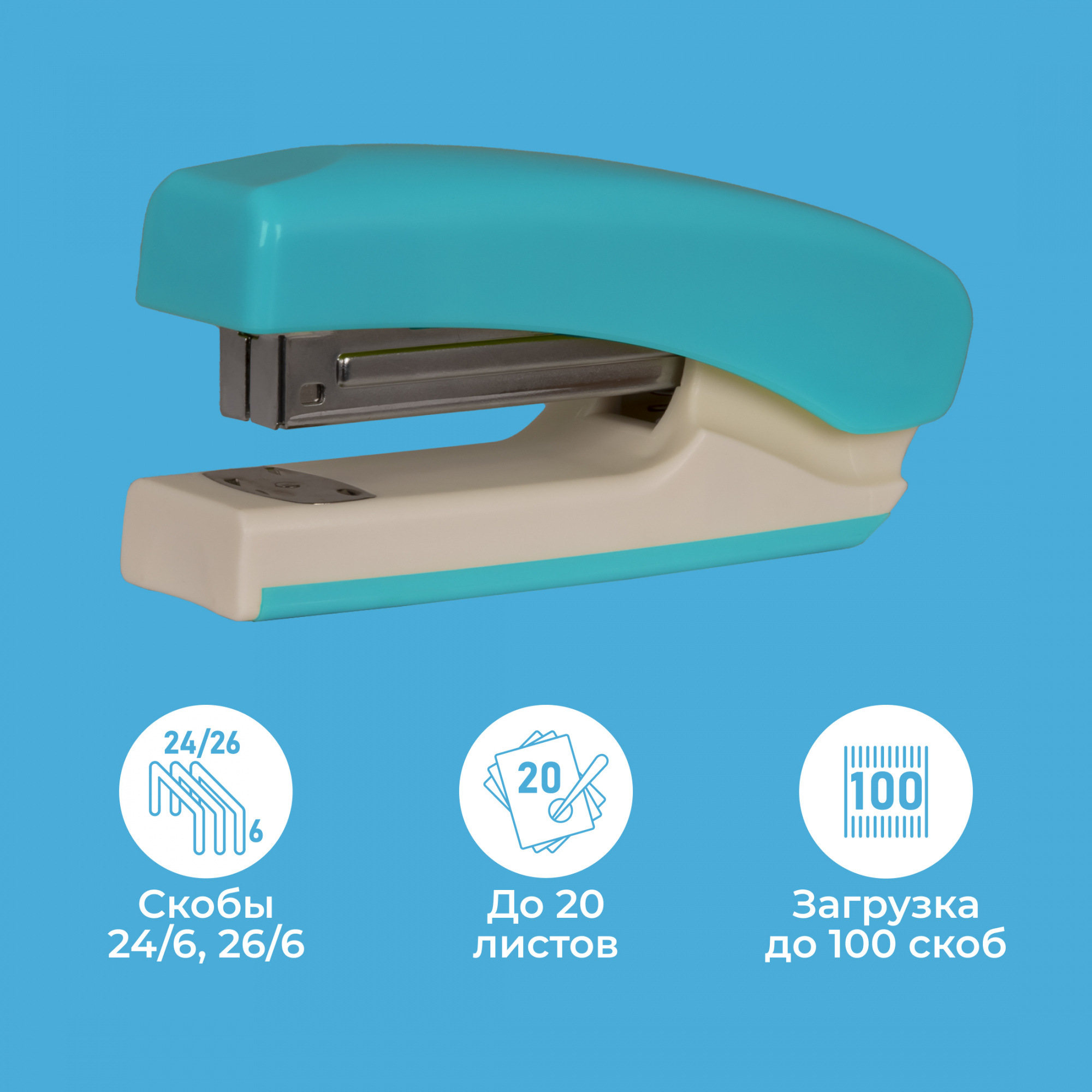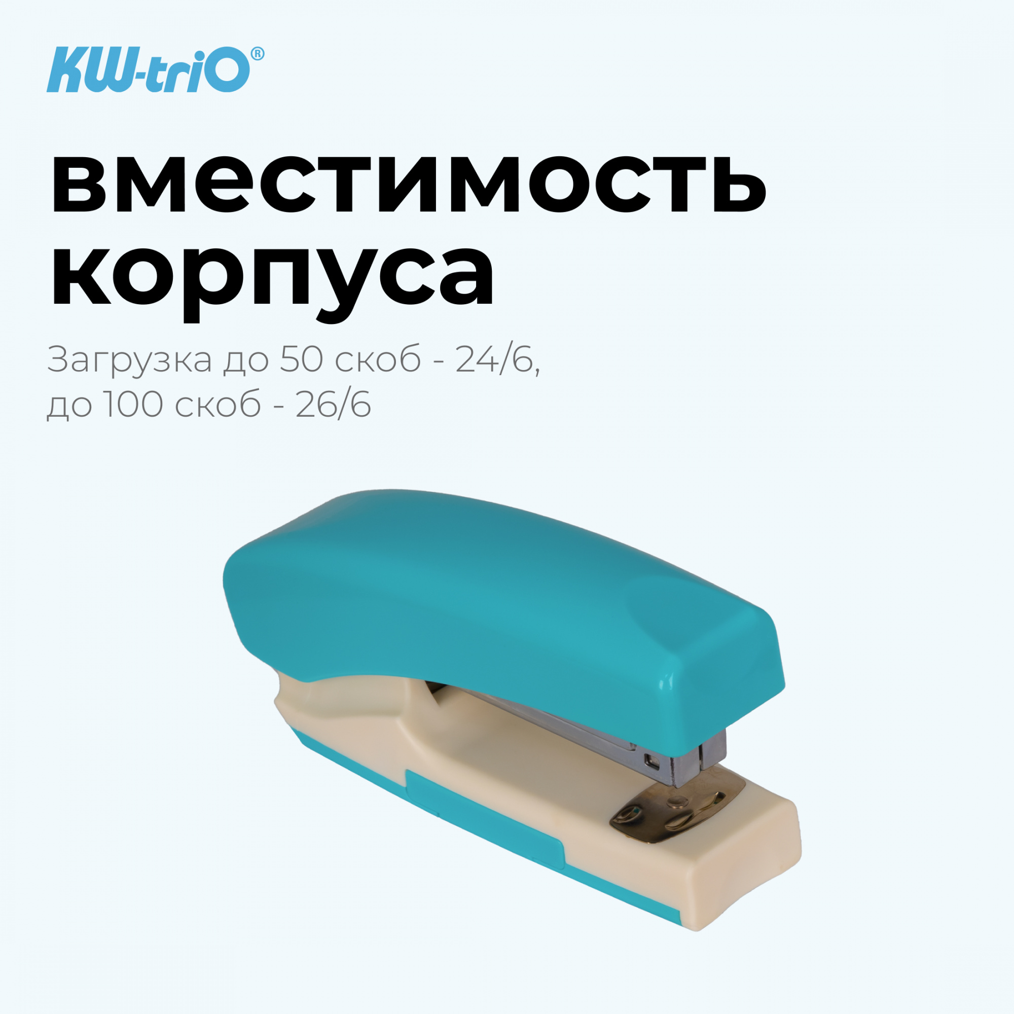 Степлер ручной Kw-Trio 055G9BLUE 24/6 26/6 (20листов) снижение усилия голубой/белый 100скоб металл коробка