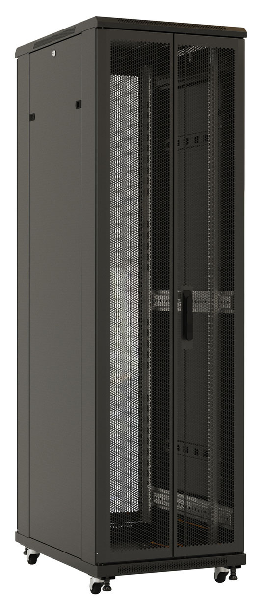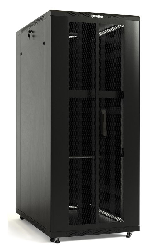 Шкаф серверный Hyperline (TTBR-4281-DD-RAL9004) напольный 42U 800x1000мм пер.дв.перфор.2ств. задн.дв.перфор.2-хст. 2 бок.пан. 800кг черный 910мм 2055мм IP20 сталь