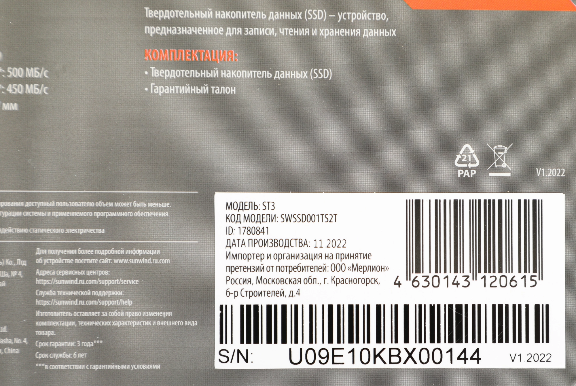 Накопитель SSD SunWind SATA-III 1TB SWSSD001TS2T