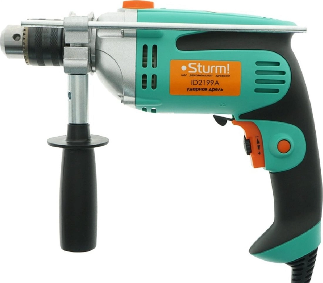 Дрель ударная, дополнительные угольные щетки (комплект, 2 шт.), ключ, инструкция по эксплуатации.