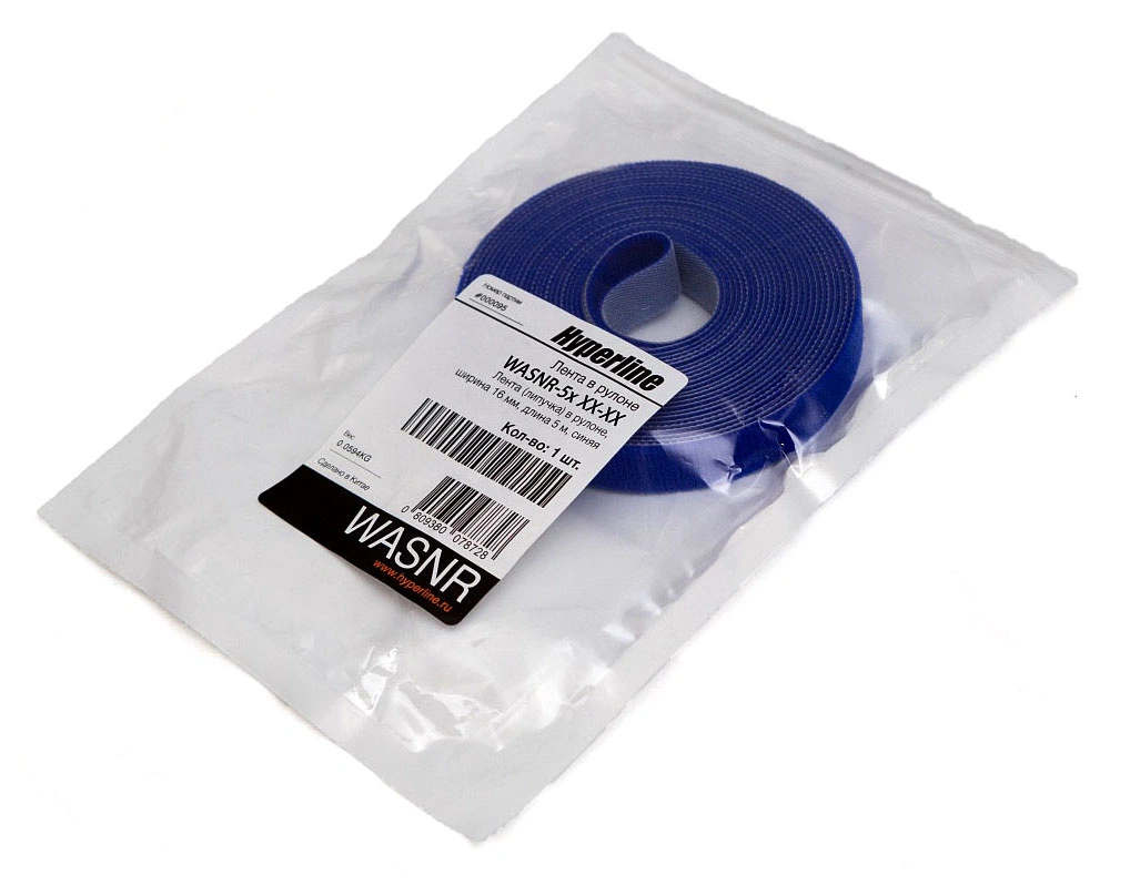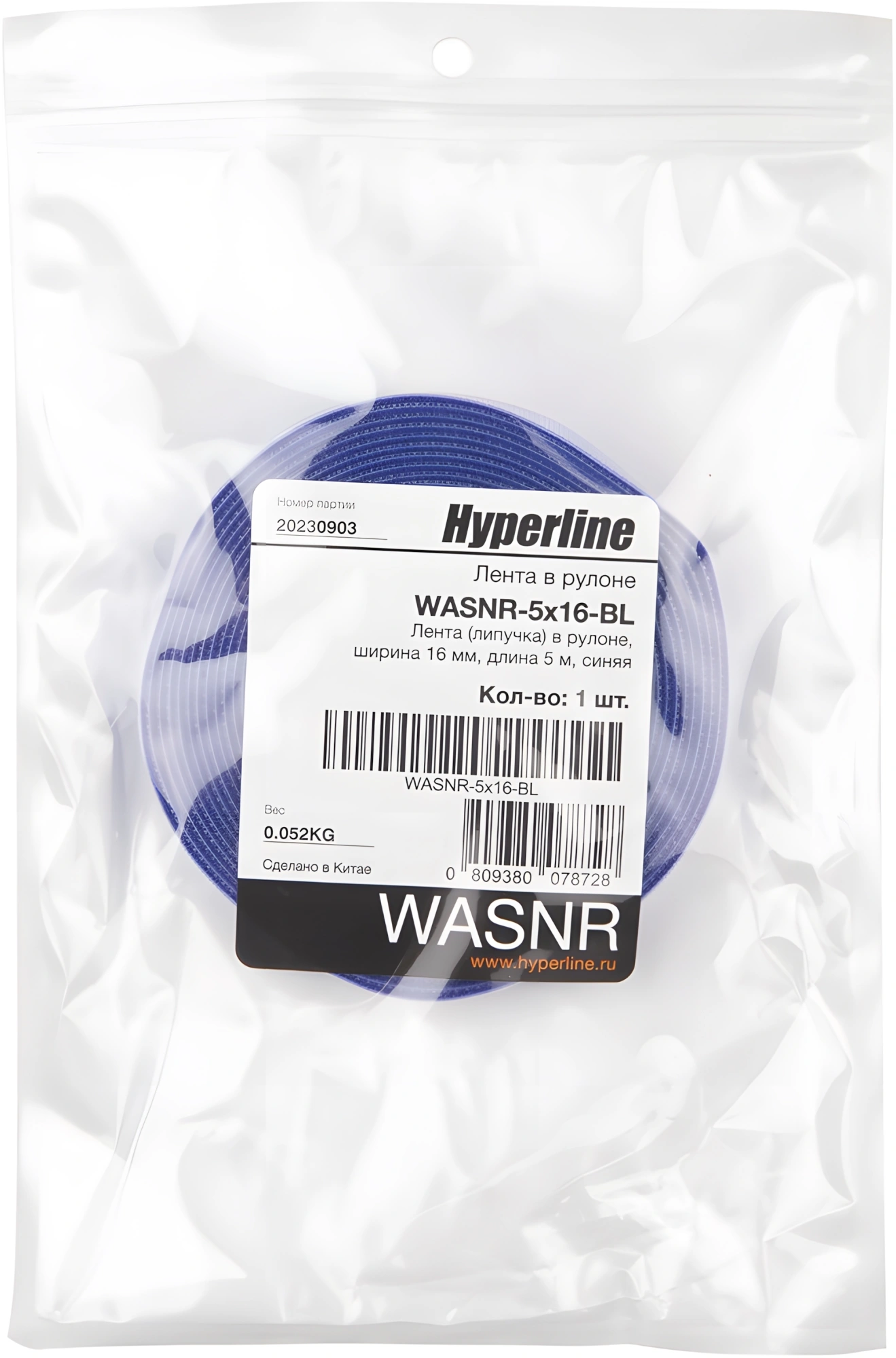 Хомут-липучка Hyperline WASNR-5X16-BL 5000x16мм (упак:1шт) полиамид синий