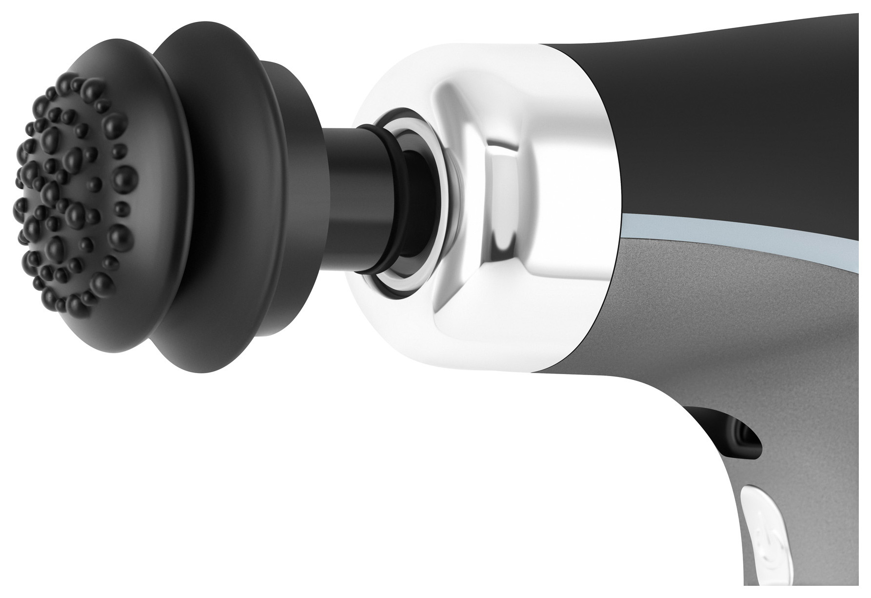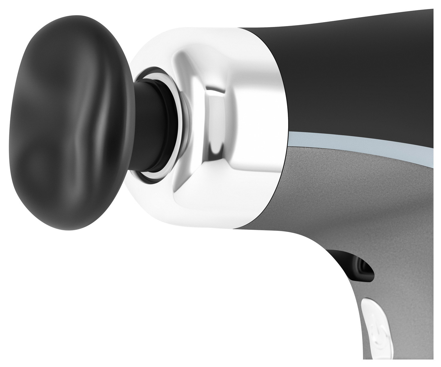 Данная модель называется перкуссионной, потому что воздействует на участки тела лёгкими толчками. Она отлично помогает релаксировать и после трудового дня в офисе, и после интенсивной тренировке в спортзале.