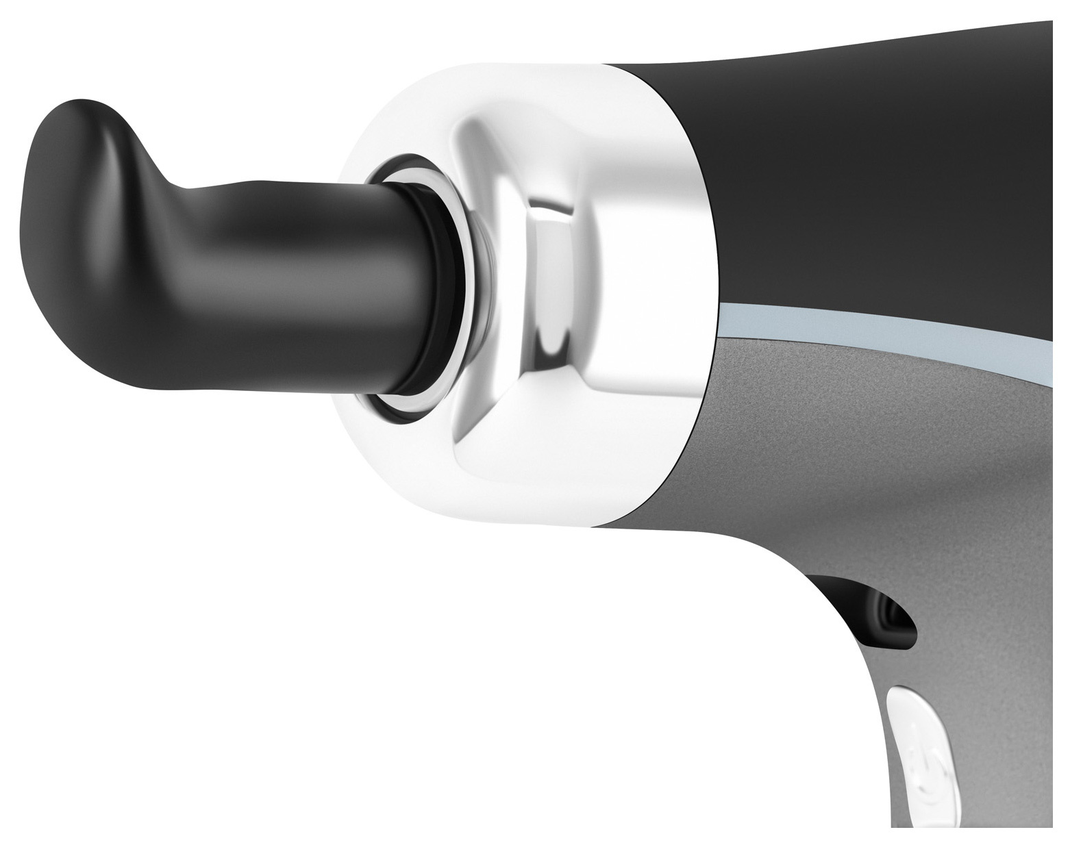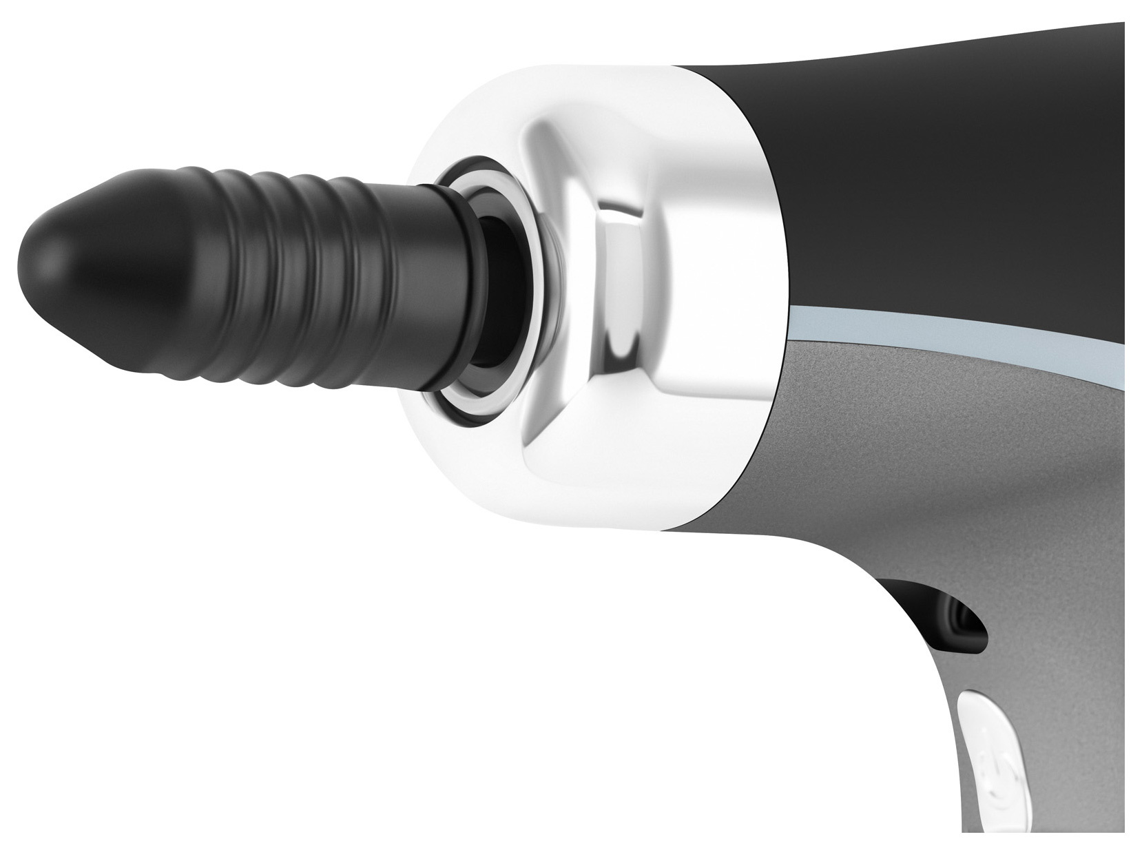 Для удобства массажер оснащён встроенным аккумулятором, который полностью заряжается за 180 минут посредством обычного кабеля USB Type-C. Вход для него находится на рукоятке, рядом с клавишей включения и выключения.