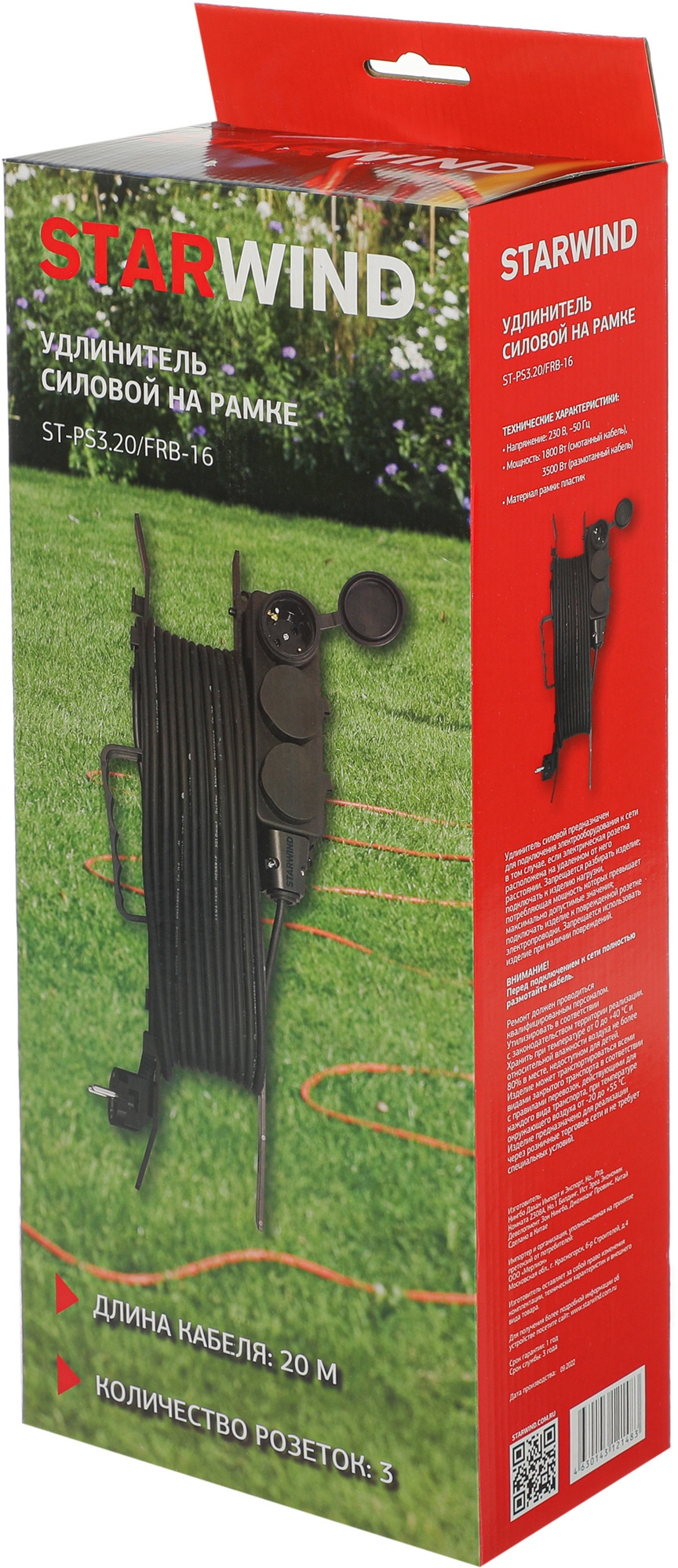 Starwind ST-PS3.20/FRB-16 — это эргономичный силовой удлинитель-разветвитель с удобной рамкой для сматывания провода.