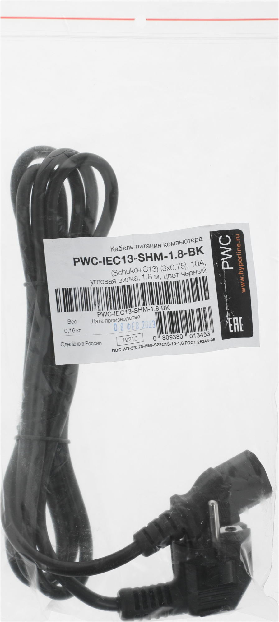 C13-Schuko проводник.:3x0.75мм2 1.8м 250В 10А (упа...