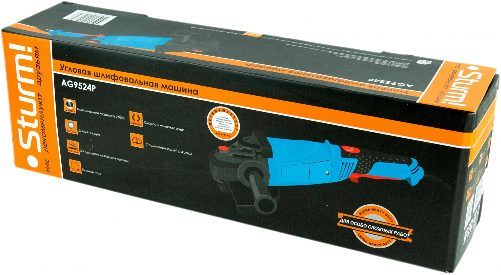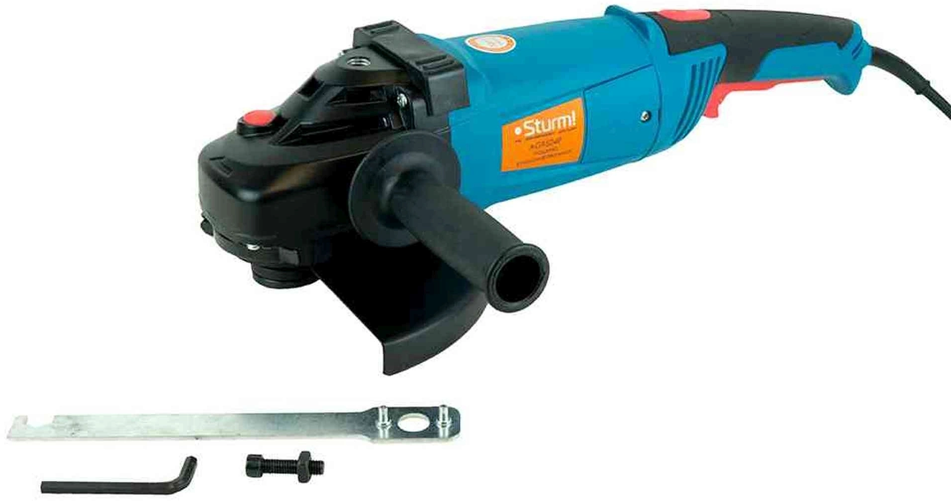 Защитный кожух, боковая рукоятка, винт с гайкой, фланцевый ключ, шестигранный ключ, дополнительные угольные щетки (комплект, 2 шт.), инструкция по эксплуатации.