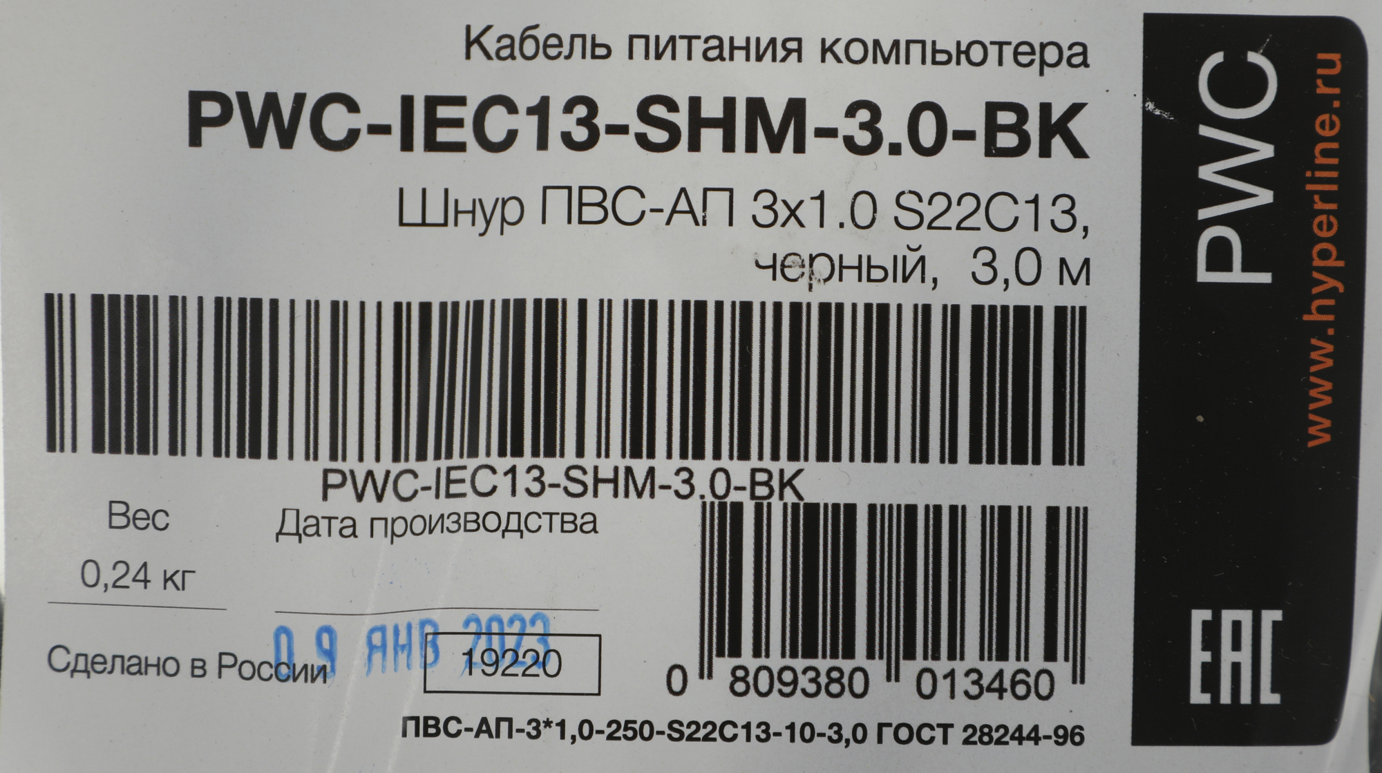 C13-Schuko проводник.:3x1.0мм2 3м 250В 10А (упак.:...