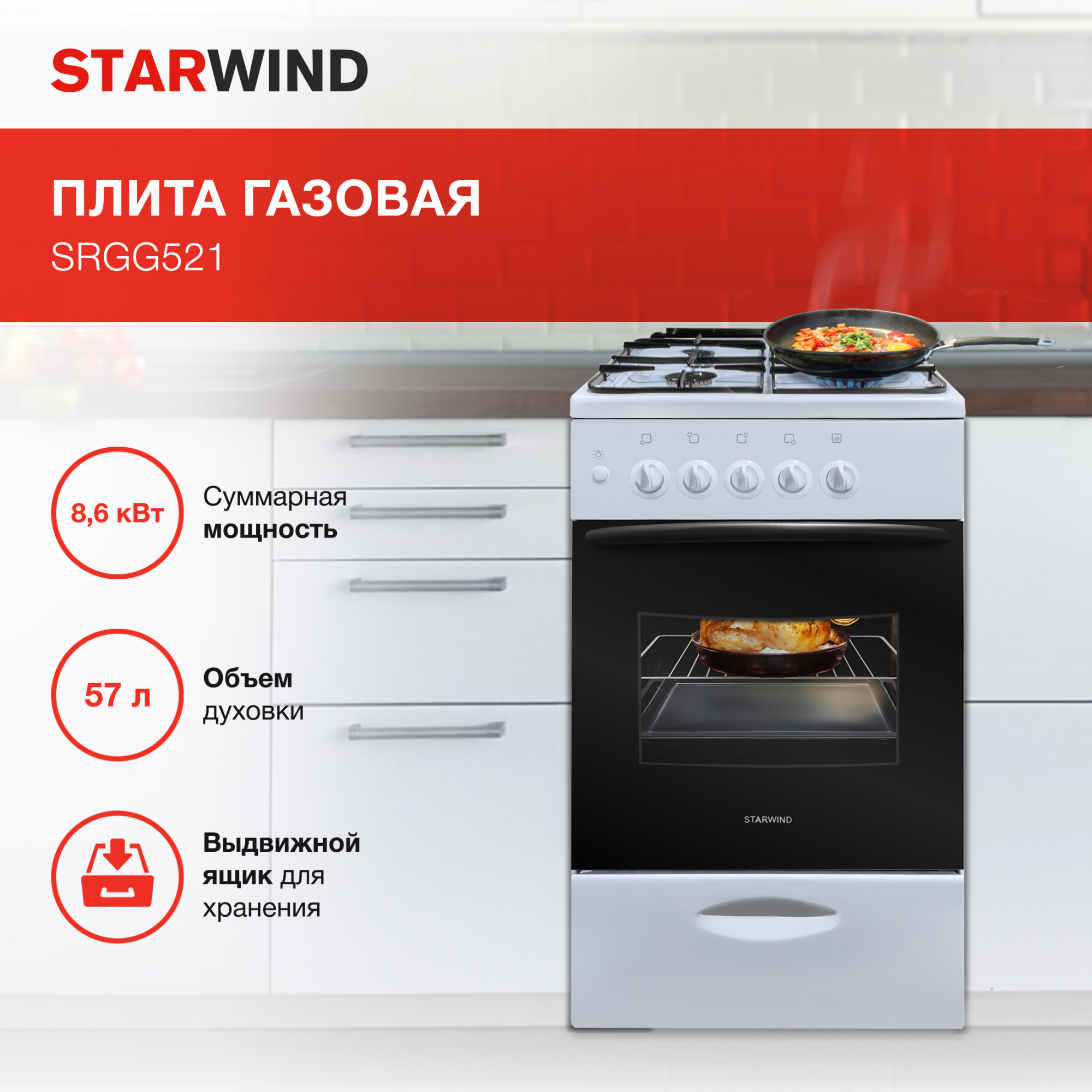 Для комфортного приготовления пищи в газовой плите StarWind SRGG521 предусмотрены решения, которые будут полезны