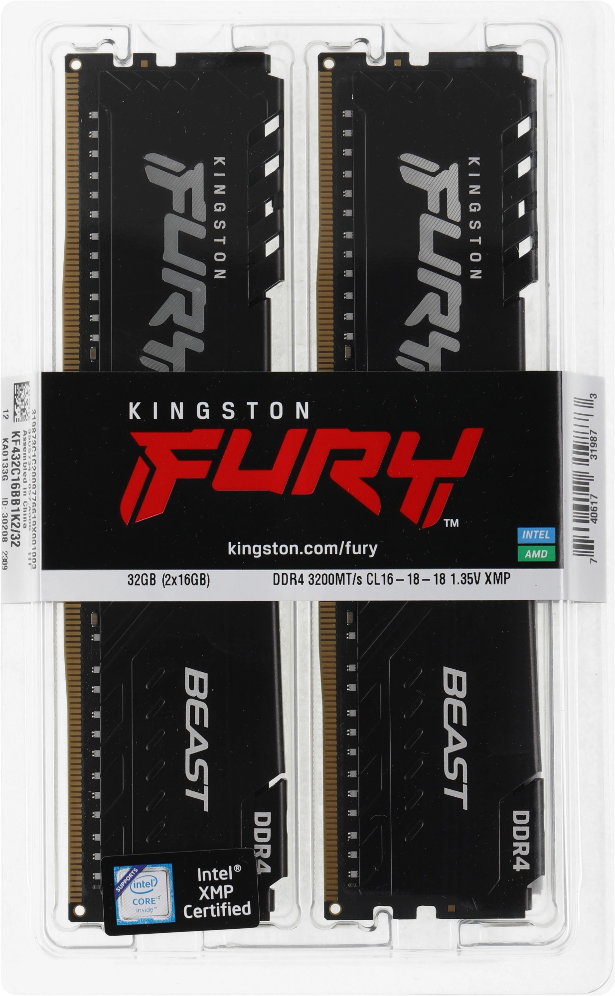 Fury Beast RTL Gaming PC4-25600 CL16 DIMM 288-pin...