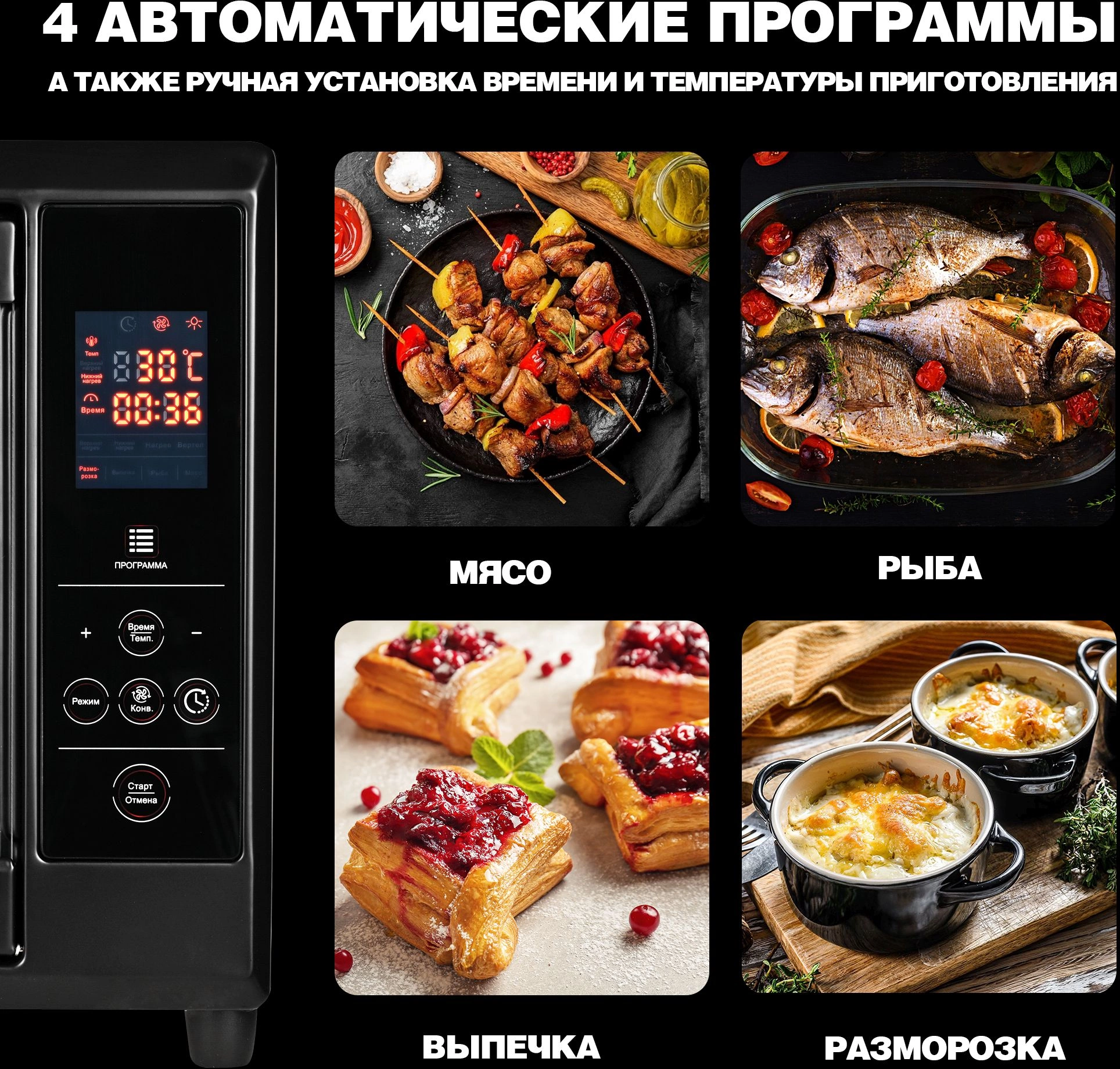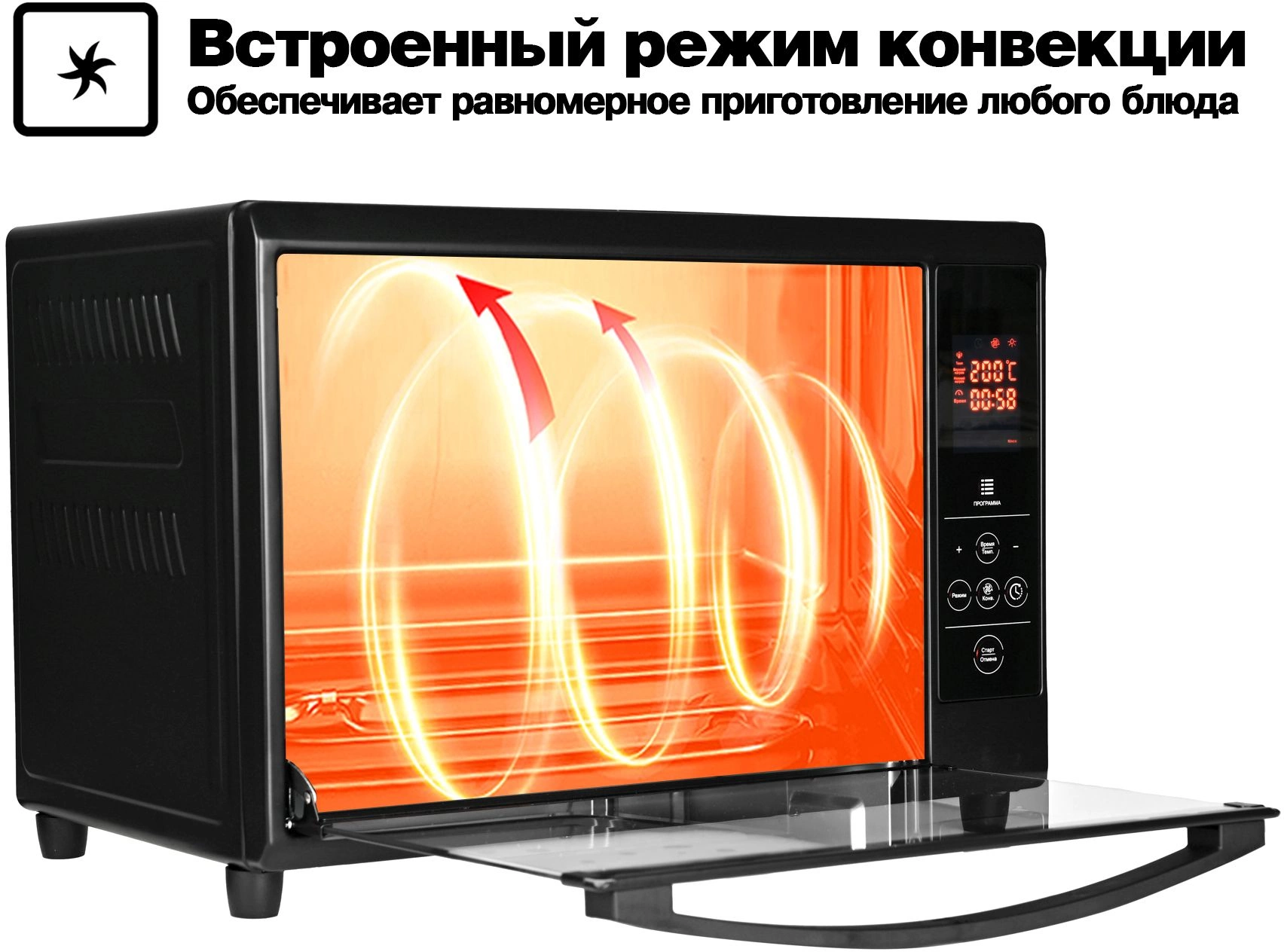 Обширный набор аксессуаров в комплекте. Функция «Отложенный старт». Конвекция