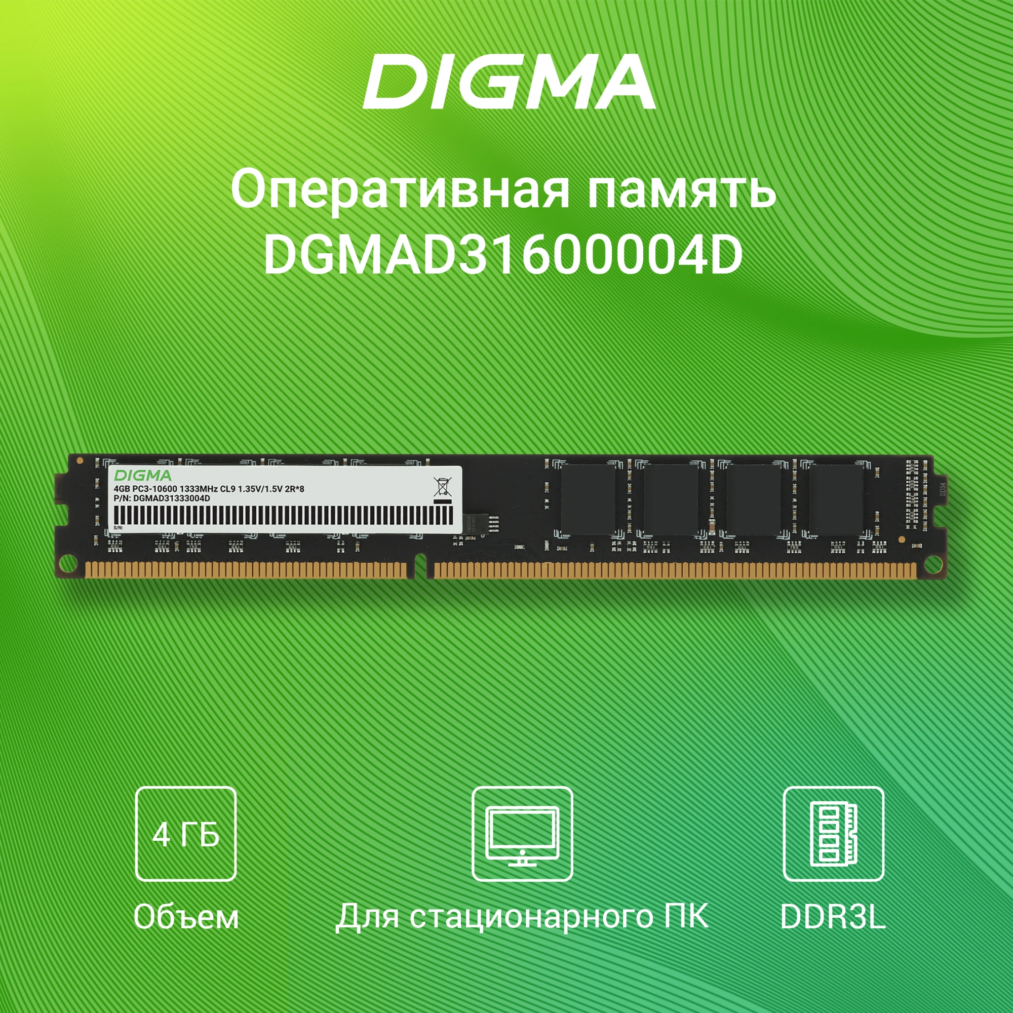 Память DDR3 4GB 1333MHz Digma DGMAD31333004D