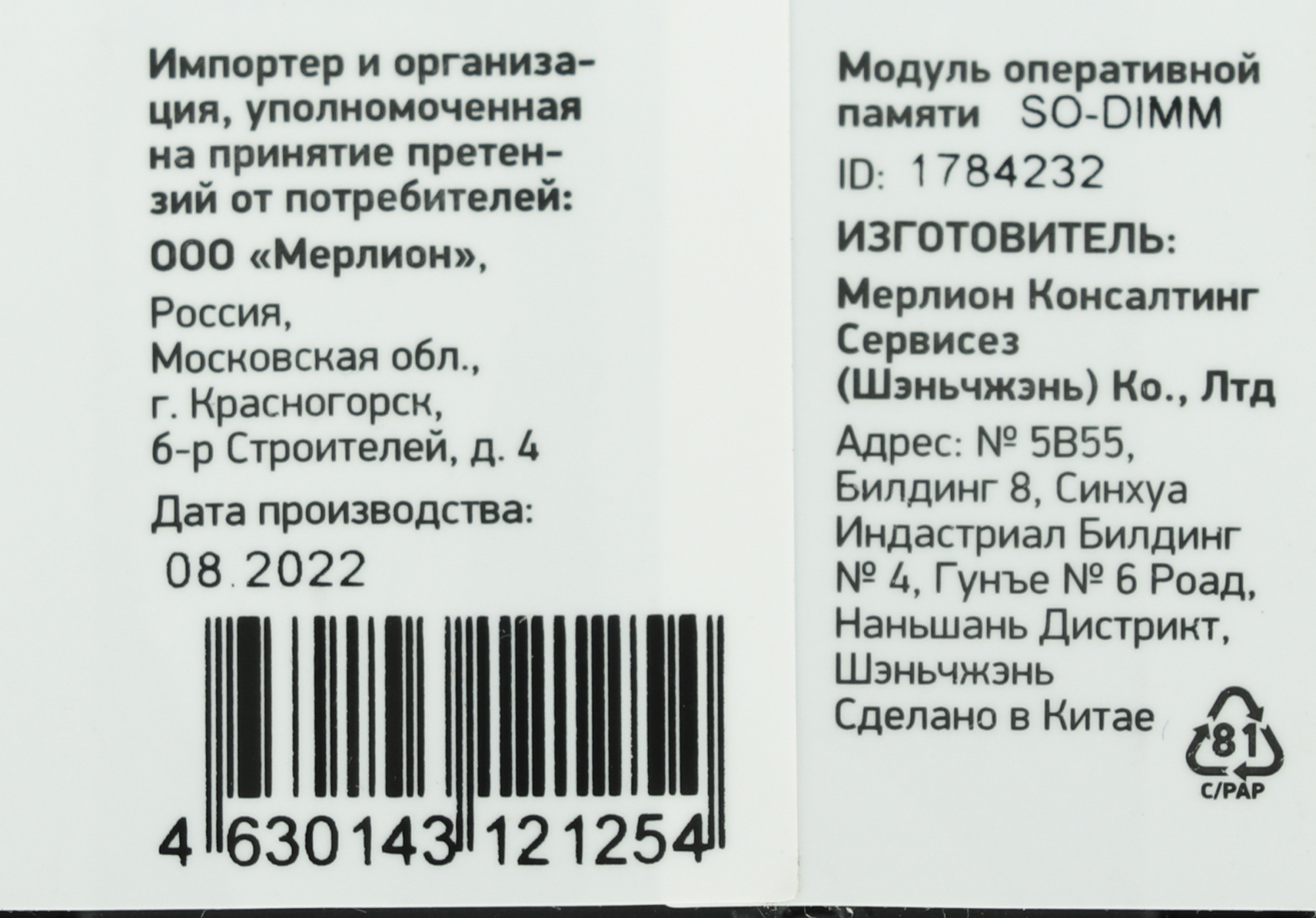RTL PC3-12800 CL11 SO-DIMM 204-pin 1.35В dual ran...