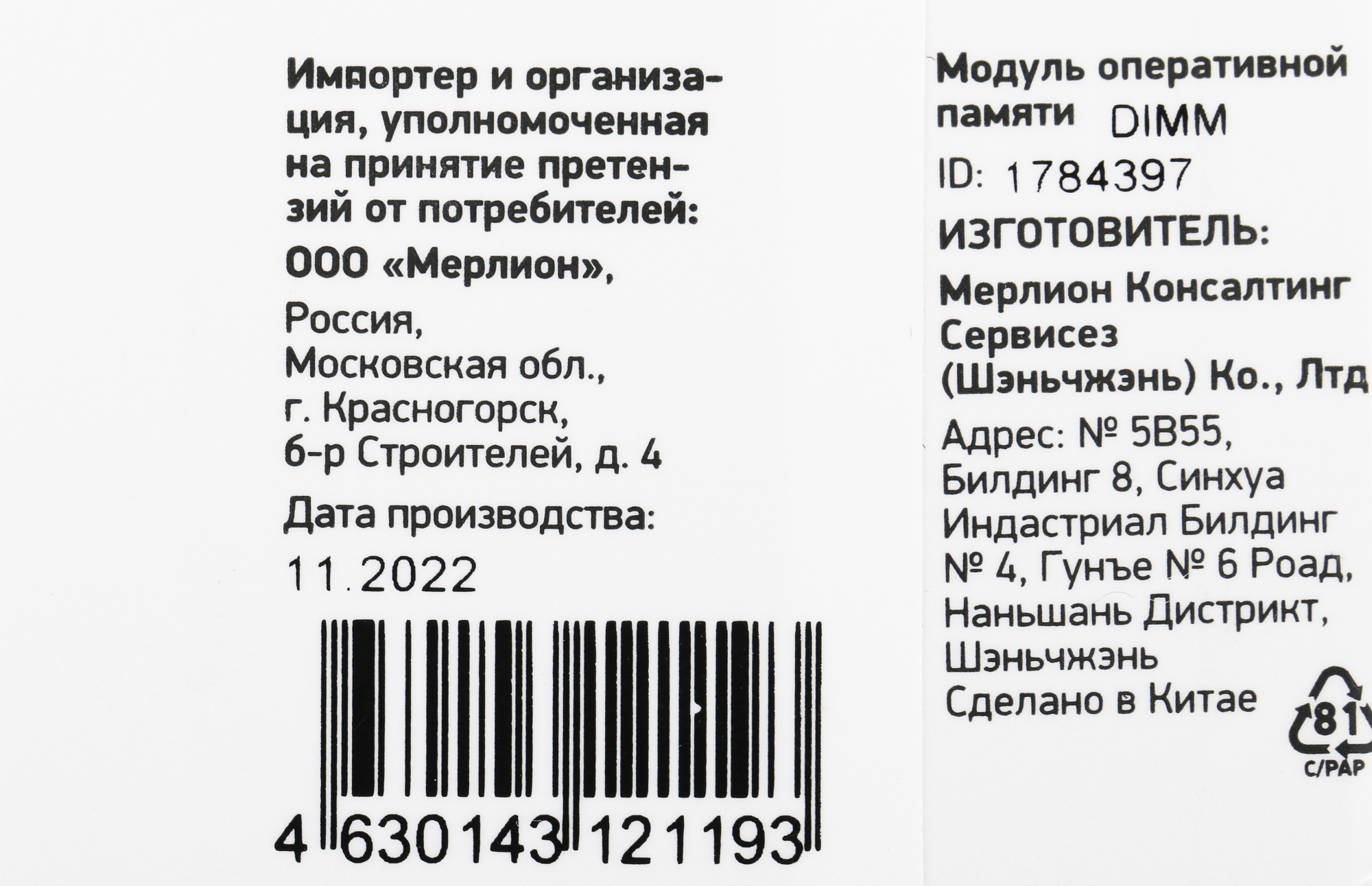 PartNumber / Артикул Производителя