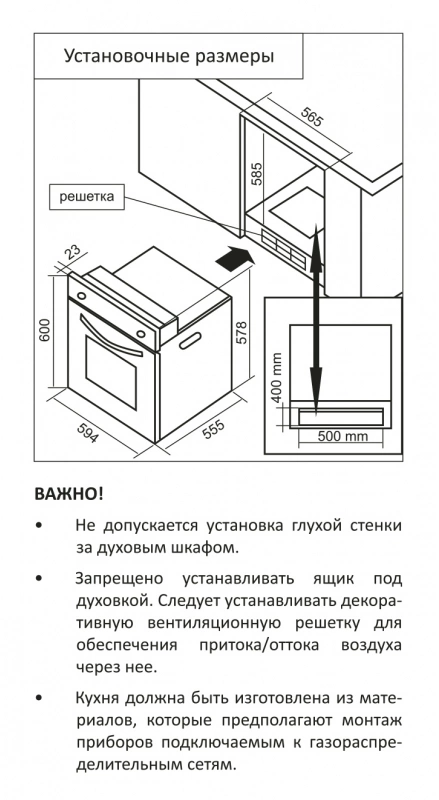 Размеры для встраивания